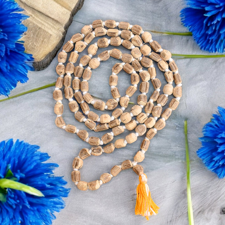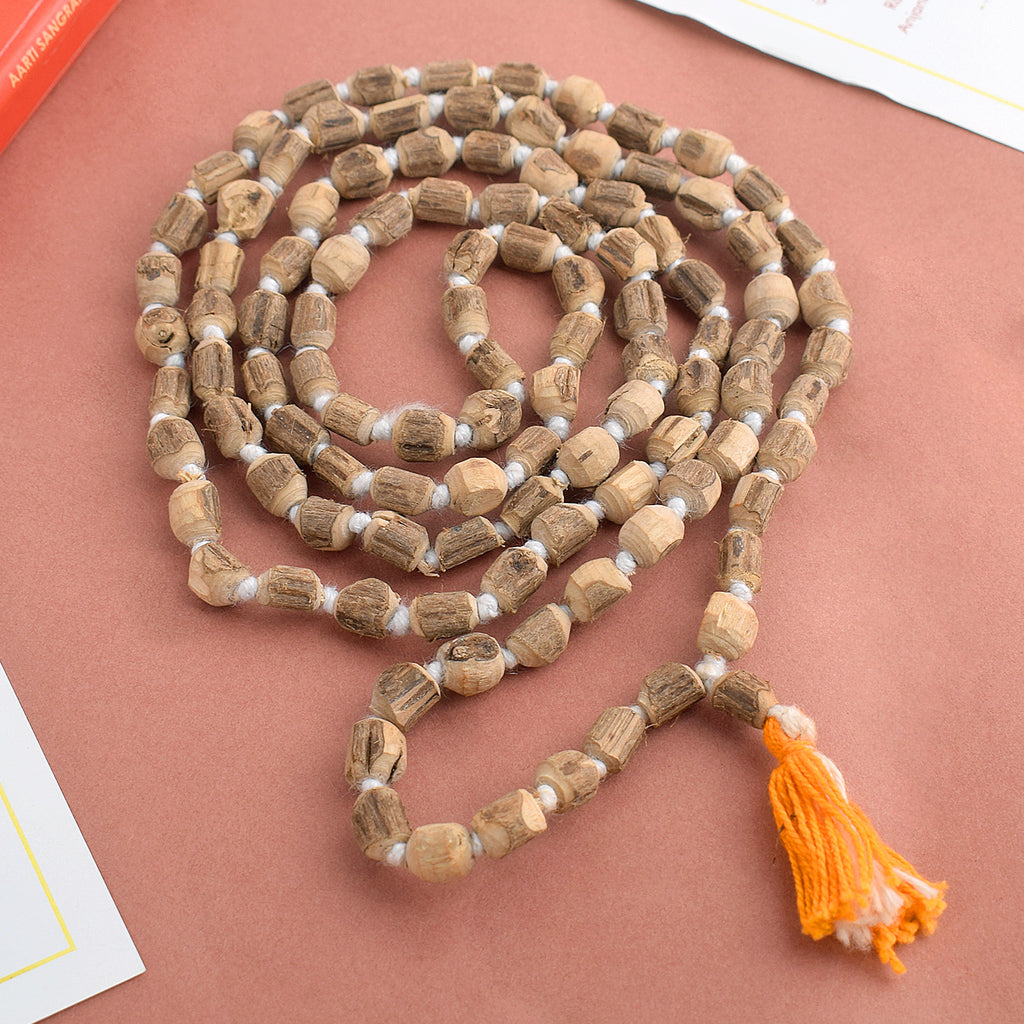 A Tulsi Mala is a string of beads made from the wood of the sacred Tulsi plant (Ocimum sanctum). It is widely used in Hinduism, Jainism, and Buddhism for chanting (Japa) and wearing as a protective necklace. The power of Tulsi Mala is believed to enhance spirituality, bring inner peace, and protect the wearer from negative energies.