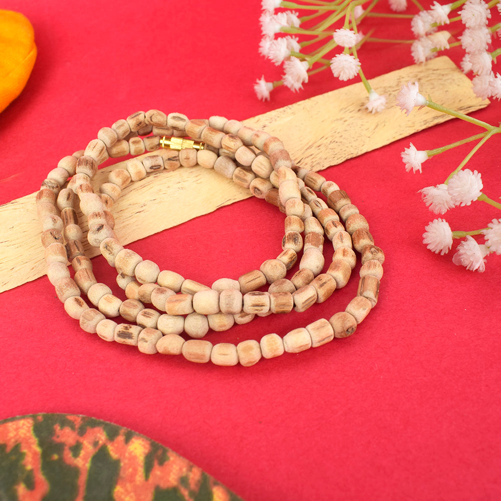 A Tulsi Mala is a string of beads made from the wood of the sacred Tulsi plant (Ocimum sanctum). It is widely used in Hinduism, Jainism, and Buddhism for chanting (Japa) and wearing as a protective necklace. The power of Tulsi Mala is believed to enhance spirituality, bring inner peace, and protect the wearer from negative energies.
