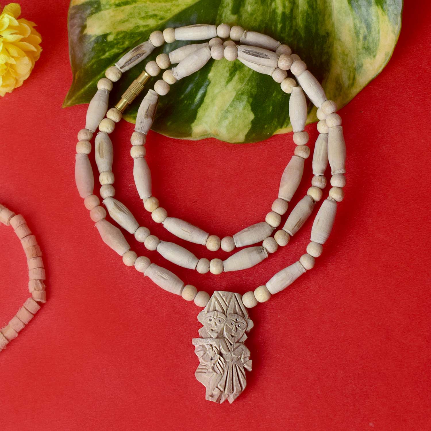 • Package Contains: 1 Pc 100% Original Authentic Tulsi Kanthi Beads Mala With Wooden Radha Krishna Locket (Size-2)