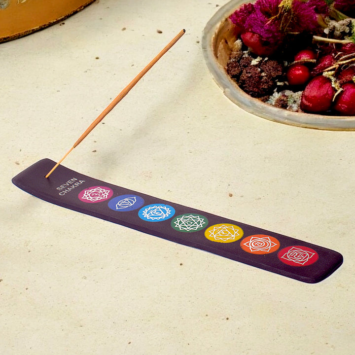 Black Seven Chakra Incense Holder Plate for Meditation and Spiritual Decor