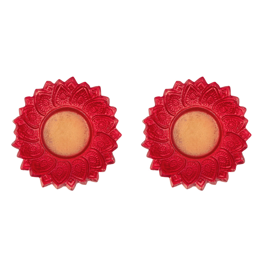 Floral Chakra Metal Diya in Red Color (Pack of 2)