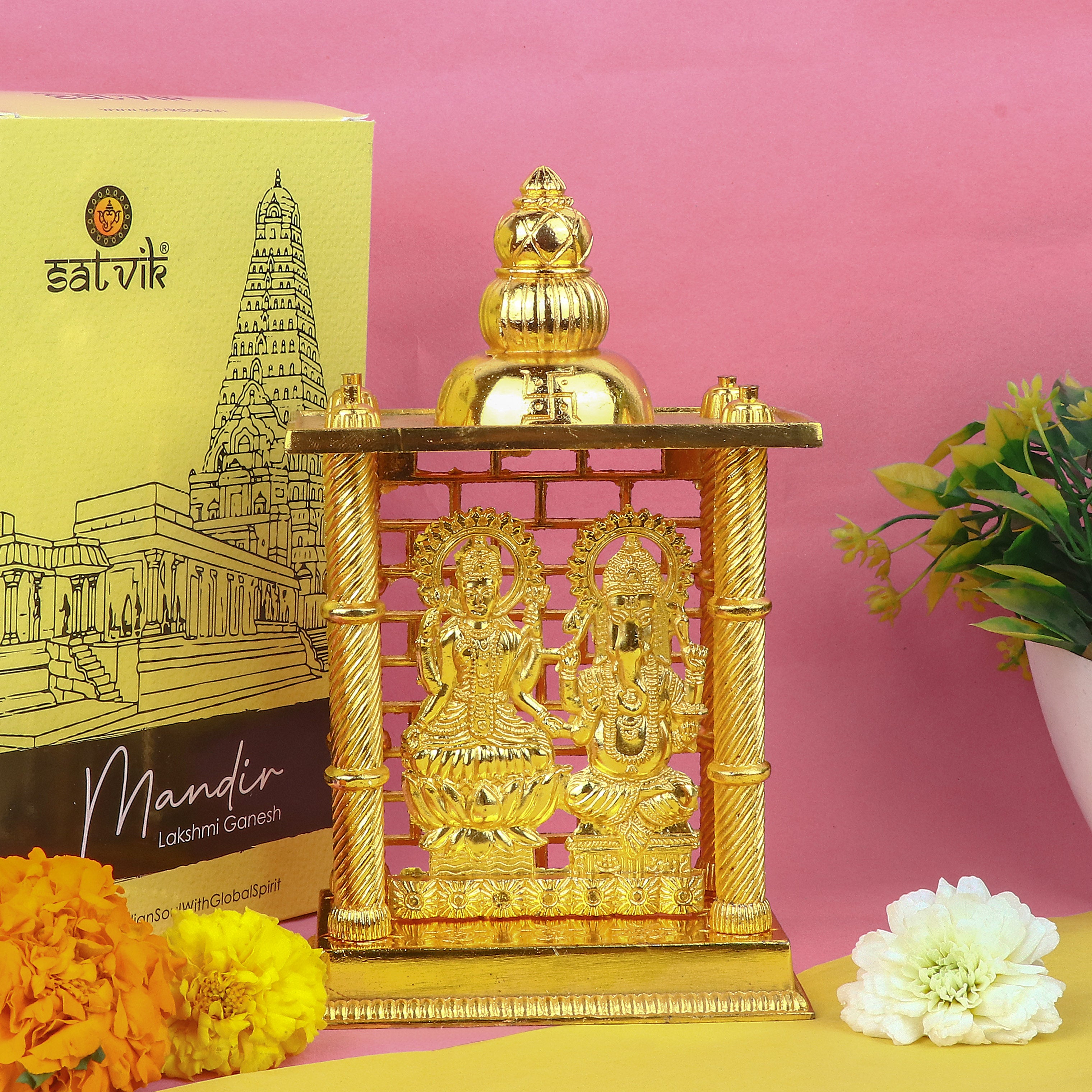 • Material: The beautiful Lakshmi Ganesh Mandir is constructed by Sand Casting Technique, Which makes the product Long Lasting and Durable.