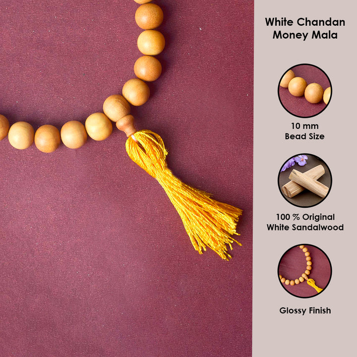 Buy 27 Bead White Chandan Money Mala for Wealth | Satvikstore.in – satvikstore.in