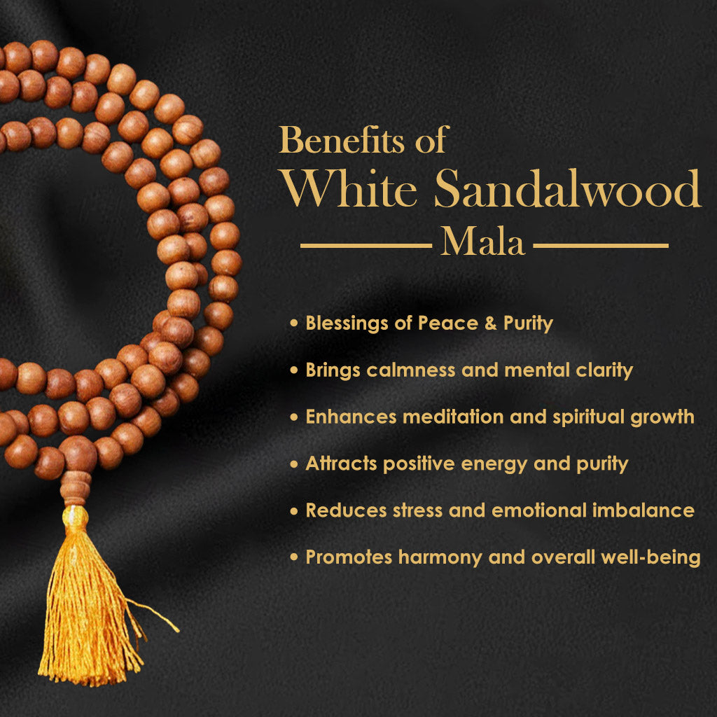 • Material: 100% Natural White Sandalwood (Chandan) Beads