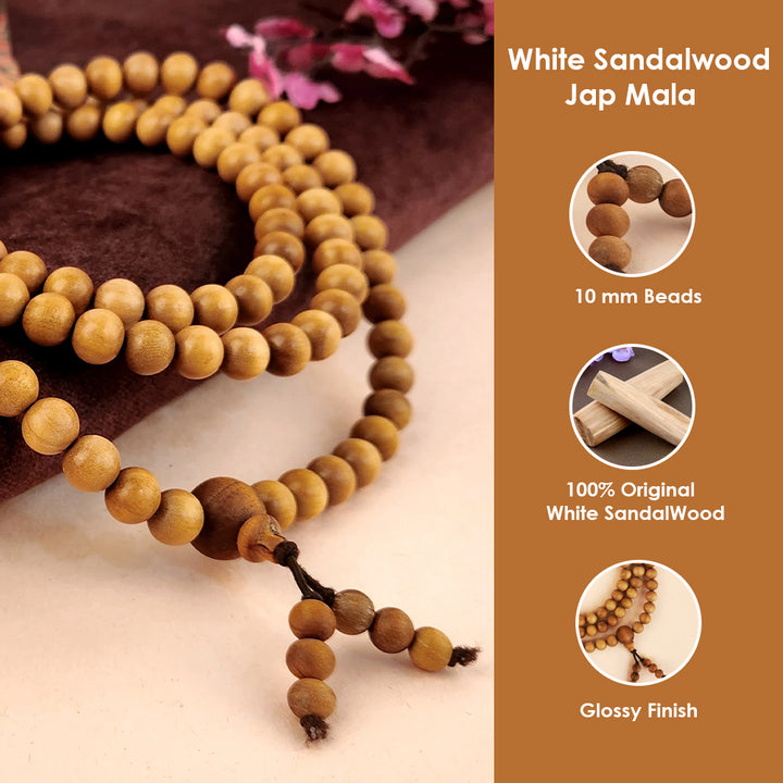 White Sandalwood Jap Mala | Original White Sandalwood Mala | Mala for Vishnu and Lakshmi Jaap | Pure Chandan Mala for Puja | Natural White Sandalwood Prayer Beads |