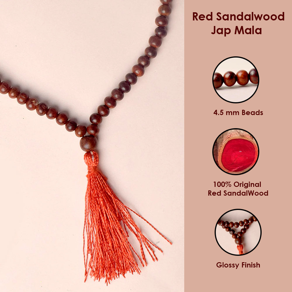Certified 4.5mm 100% Original Authentic Pure Red Sandalwood Jap Mala (Andhra Pradesh)
