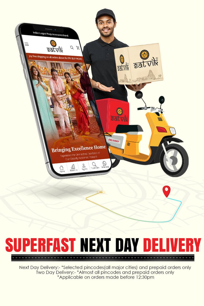 With our user-friendly website, satvikstore.in, you can browse through our extensive collection and conveniently find the puja items you need. We offer secure payment options and provide prompt and reliable delivery, ensuring a seamless shopping experience from start to finish. Shop with ease and confidence, knowing that your puja essentials are just a click away.