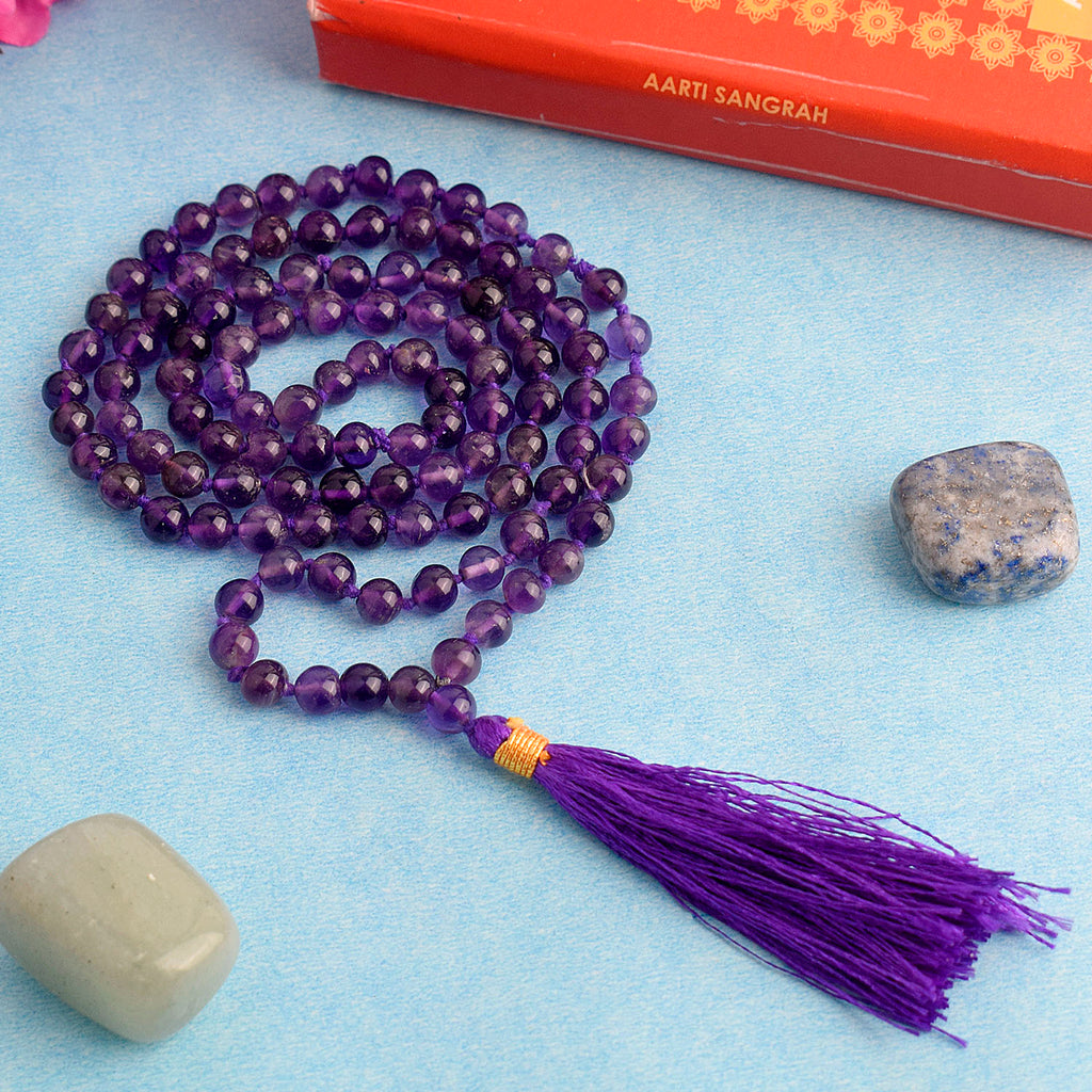 • Item Name: 108 Beads Amethyst Crystal Jaap Mala for Chakra Healing