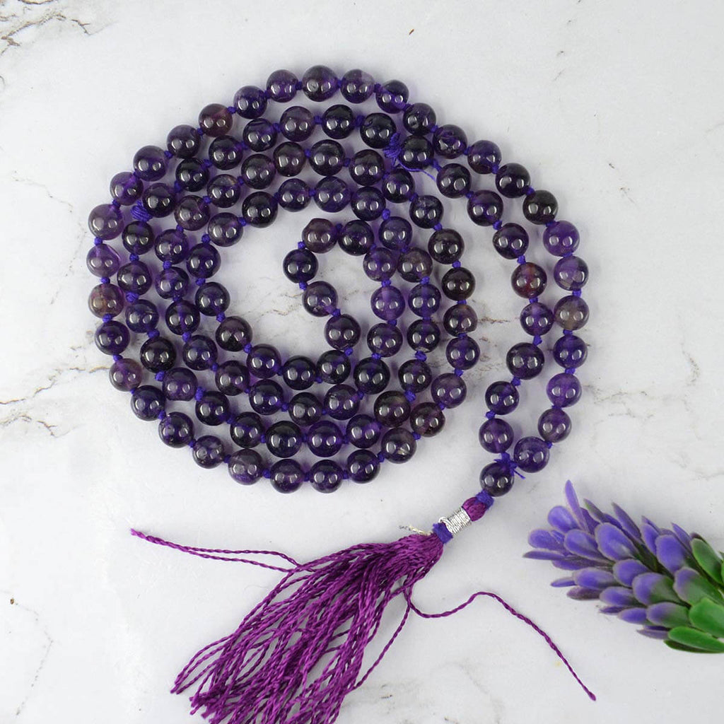 108 Beads Amethyst Crystal Jaap Mala for Chakra Healing