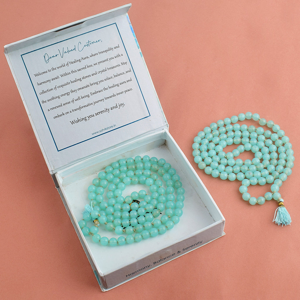 About Product: Hakik Jap Mala (Cyan Green) – A Bead of Healing, Prosperity & Inner Peace