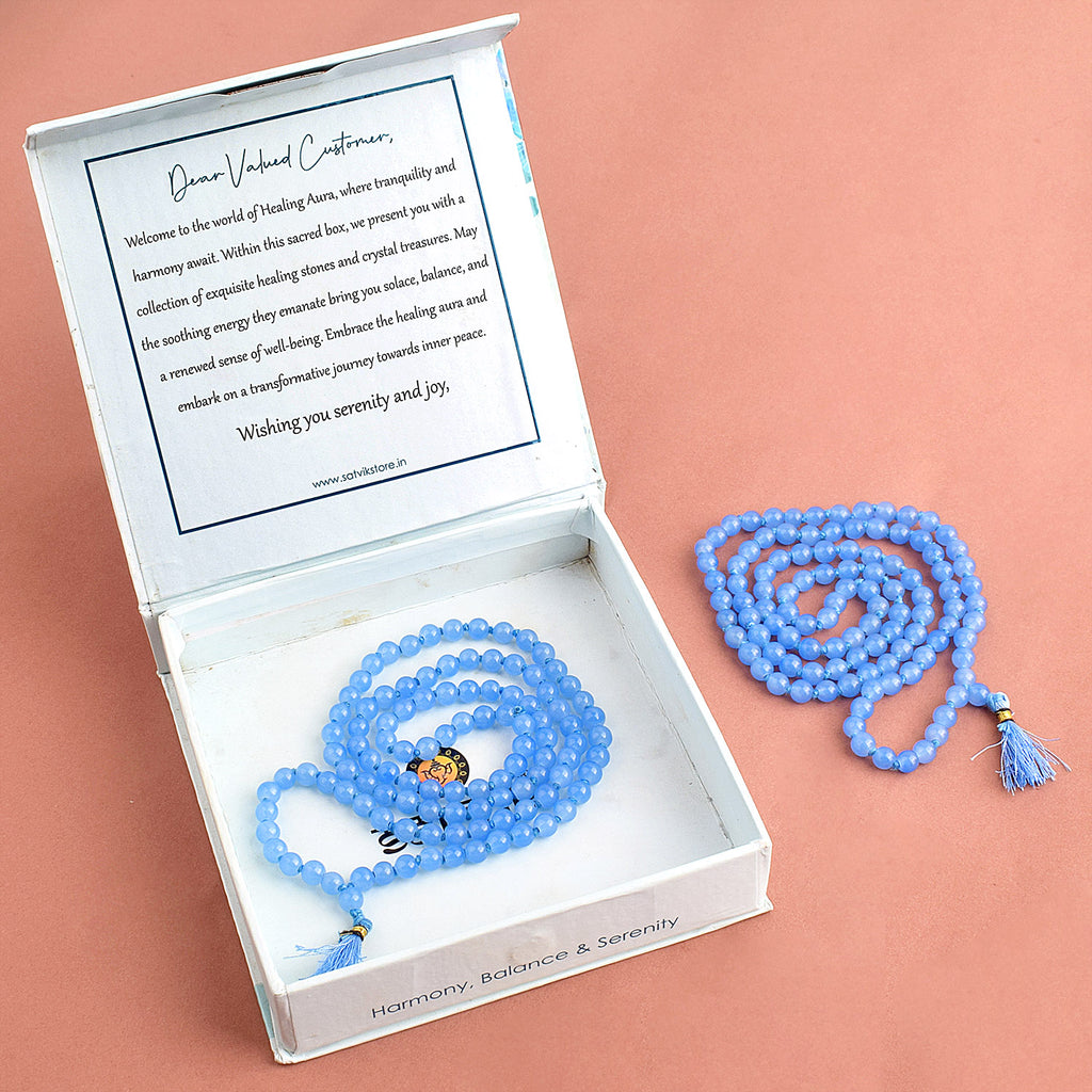 • Item Name: Premium Hakik Jap Mala Blue Calcite
