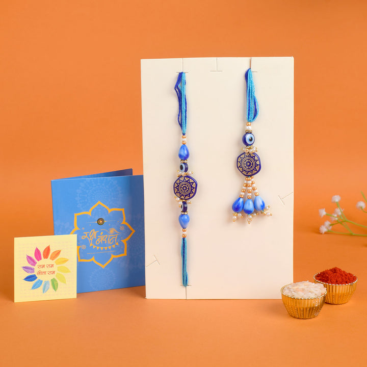 Bold and Beautiful Evil Eye Beaded Bhaiya Bhabhi Rakhi Set