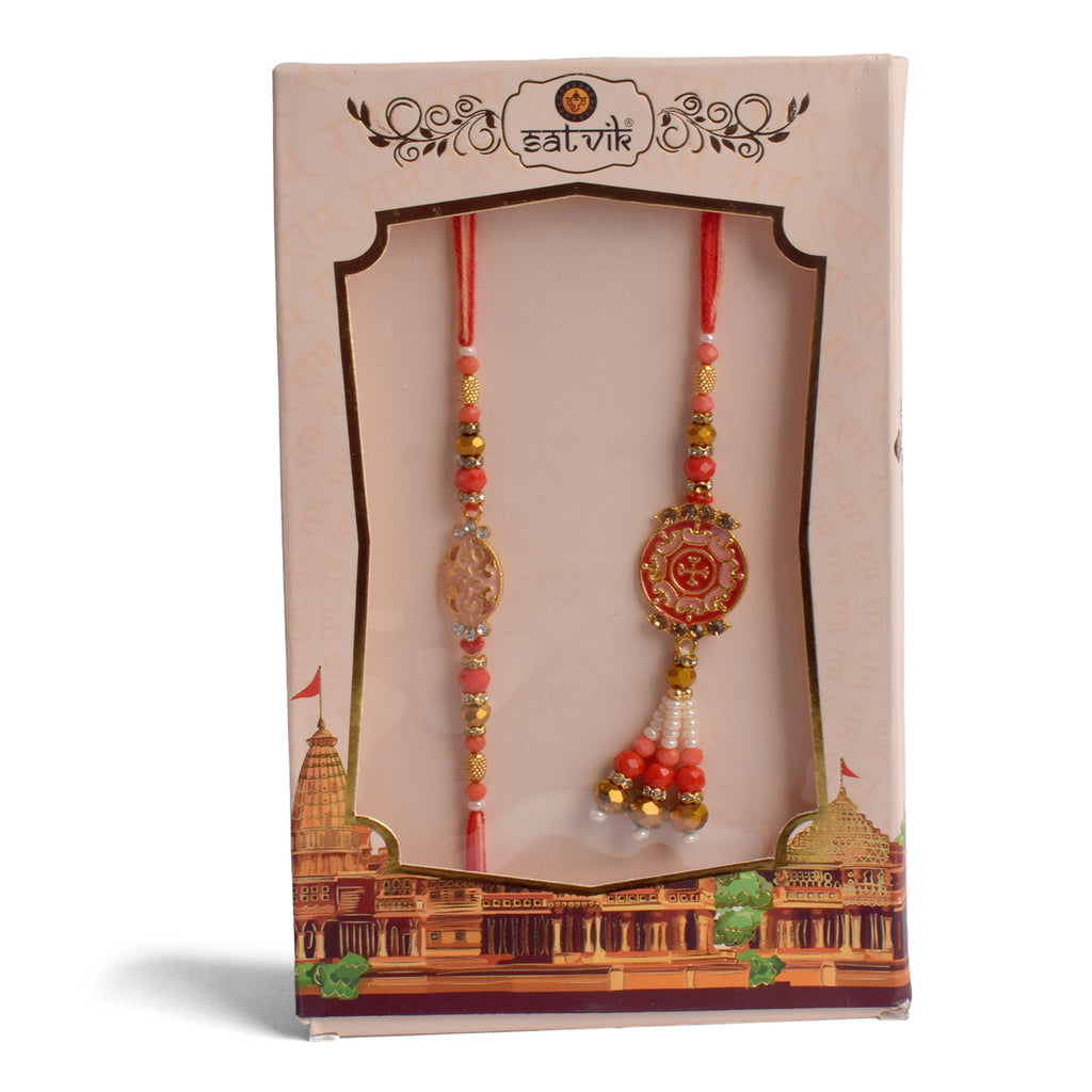 • Package: 1 Men Rakhi, 1 Women Lumba Rakhi, Roli Chawal Pack, Ram & Sita Theme Stickers