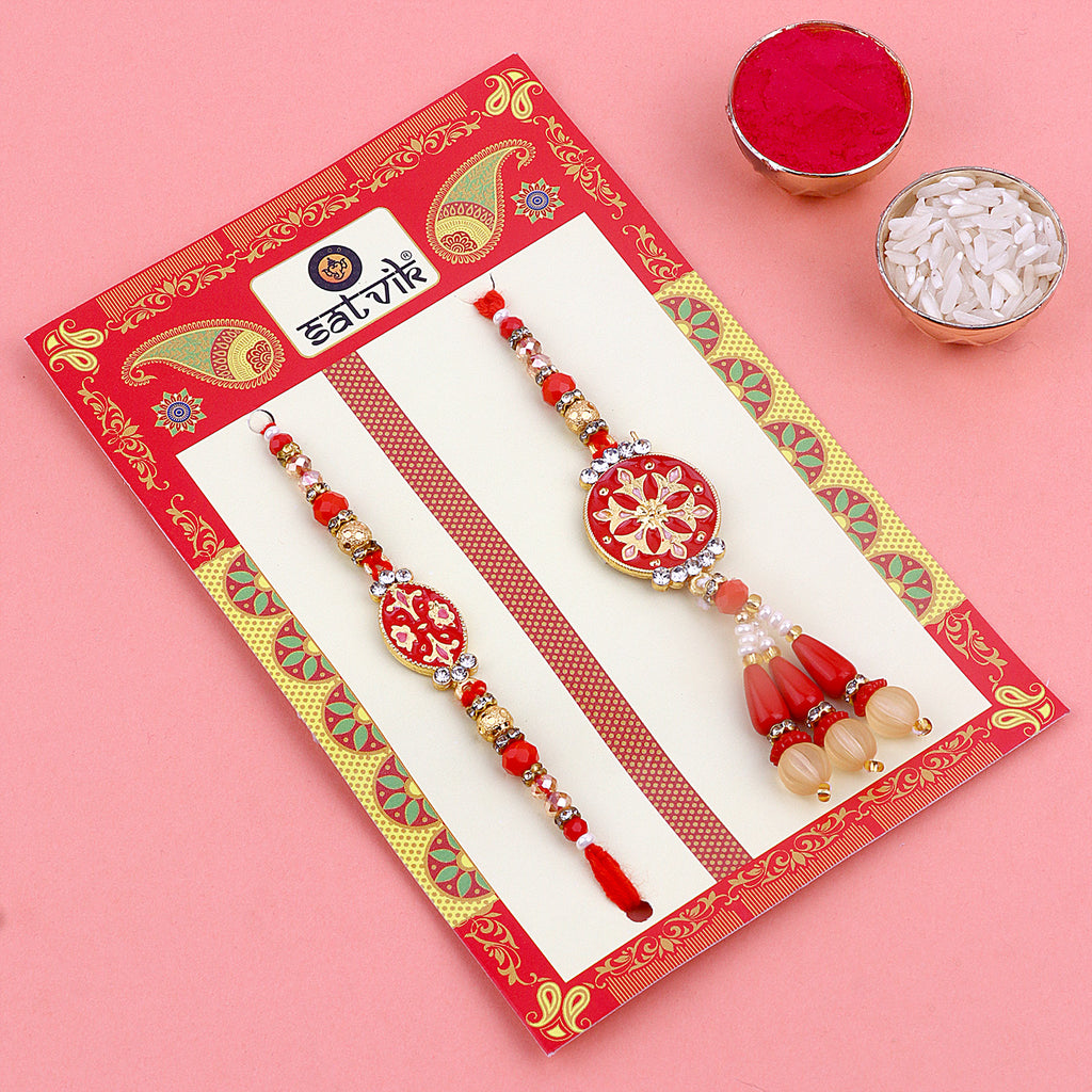 Stylish Beaded Bhaiya Bhabhi Rakhi Set