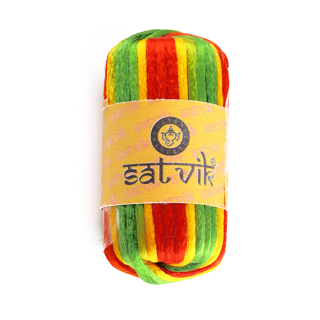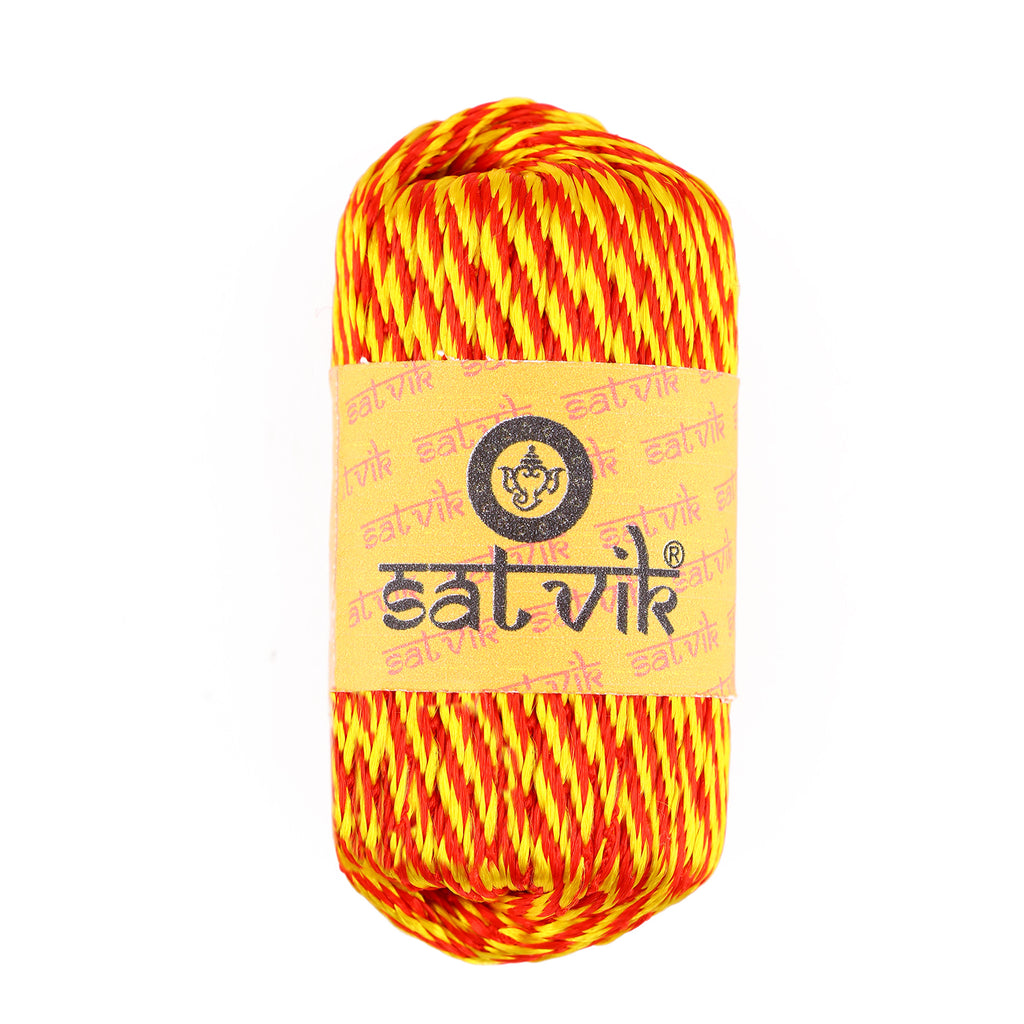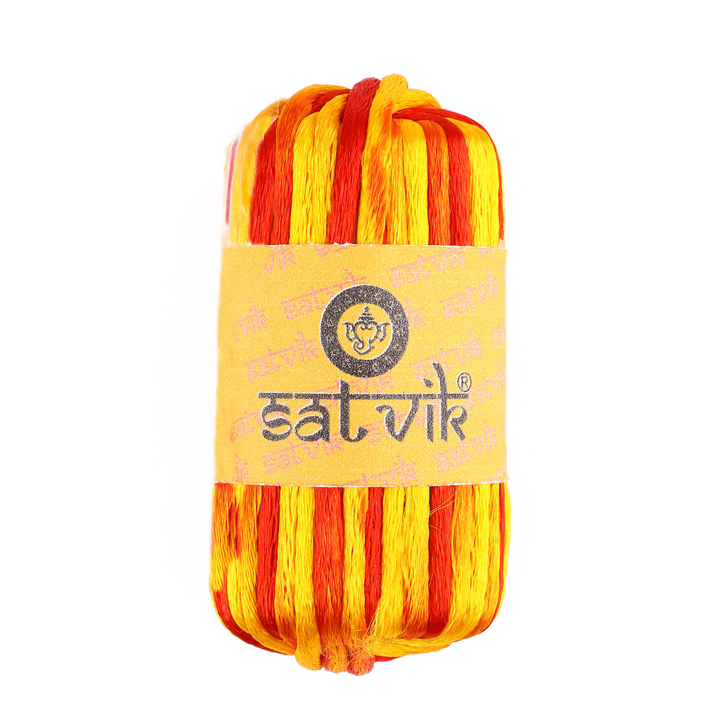 About Product: Satvik Store Presents Presenting 100% Pure Silk Moli/ Kalawa. Mouli or Kalawa is a Silk red thread roll considered to be very sacred and used in all religious purposes of the Hindus. The Mouli thread is an integral part of any puja. Silk Kalawa is the sacred Hindu thread also called mauli in Hindi. It is worn while performing Hindu rituals like Yajnaor Puja. It is tied by a priest on the wrists of all the people attending the prayer ceremony. Kalava is tied on right hand of males and unmarried females, and on left hand of married females. Sometimes it has small yellow parts in between the mostly red string. It sometimes has knots which are tied up while reciting Sanskrit mantras to invoke Brahman and is worn to ward off evil from the person who wears this red thread. Once tied, one is not supposed to untie this thread for a particular period depending upon the type of ritual. Some people tie them up till next sankalp taken. However, it usually continues for a week after puja. Many follow this for two to four weeks.