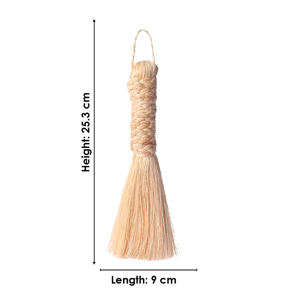 The Banana plant is a symbol of prosperity and holds a special place in ancient scriptures, associated with Lord Krishna and Goddess Lakshmi. Om Shanthi Puja Broom, crafted from pure Banana Stem Fiber, is designed for keeping your Puja space clean and dust-free. Its aesthetic design ensures thorough cleaning of every nook and corner, with an 14 centimeter height and a weight of approximately 32 grams. Keep your Puja space pure and invoke the blessings of Goddess Lakshmi with the Om Shanthi Puja Broom, a versatile tool for cleaning Puja rooms.