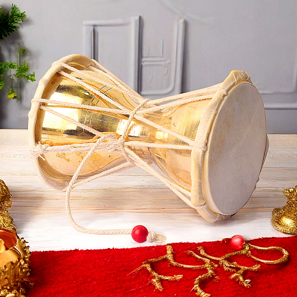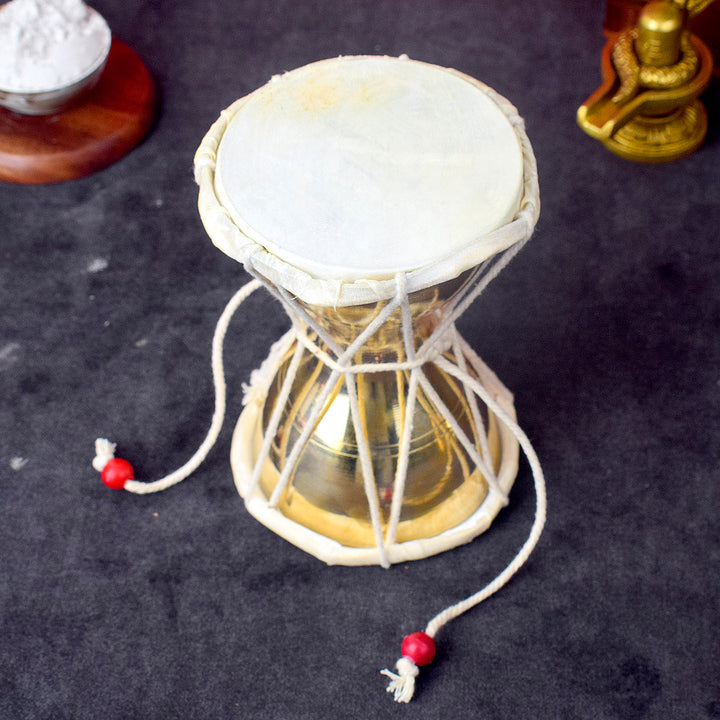 Buy Cosmic Brass Damru – Sacred Drum for Lord Shiva Worship at Satvikstore.in – satvikstore.in