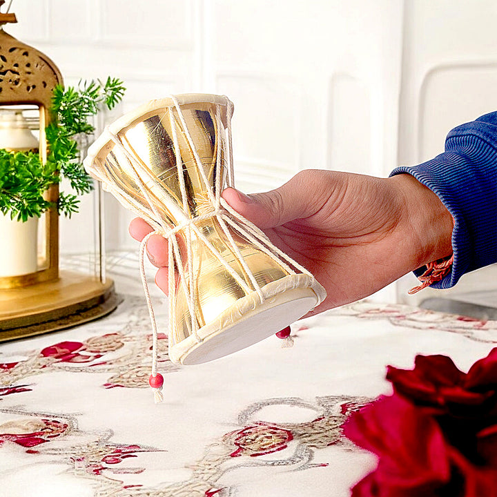 About the Product: The Cosmic Brass Damru is a beautifully handcrafted drum, designed to enhance your spiritual practices and connect you with divine energy. Made from high-quality brass, this sacred instrument is traditionally used in poojas, rituals, and meditation, especially in worship of Lord Shiva. Known for its powerful vibrations, the damru symbolizes the cosmic sound of creation and destruction, bringing harmony and balance to your spiritual journey.