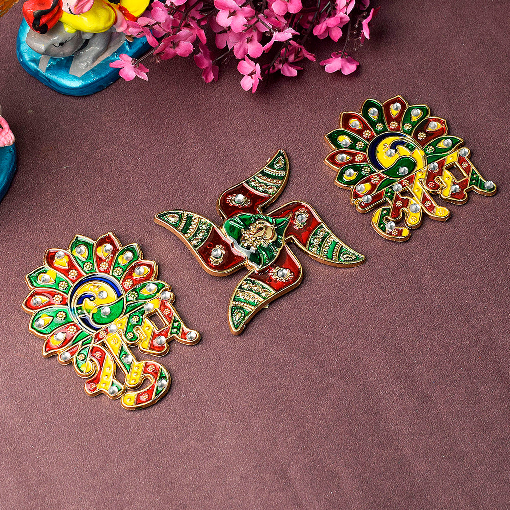 Crafted with meticulous attention to detail, these stickers feature the traditional Shubh Labh and Swastik symbols, representing the essence of good fortune and well-being. The Shubh Labh symbol, associated with auspicious beginnings, complements the Swastik, a timeless emblem of positivity and harmony.
