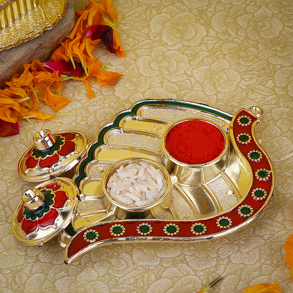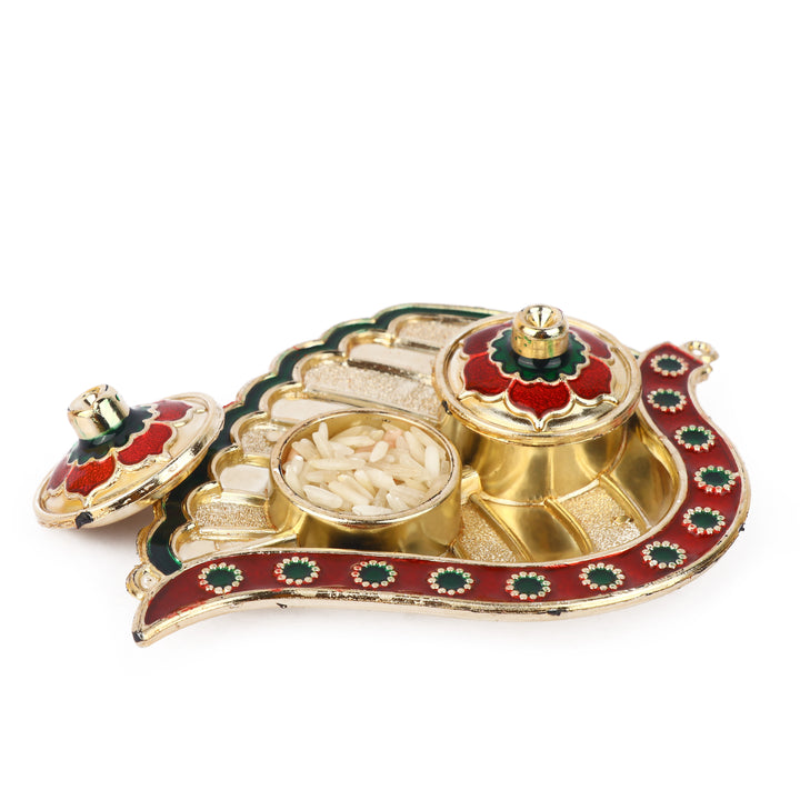 • Item Name:  Beautiful Roli Akshat Leaf Platter
