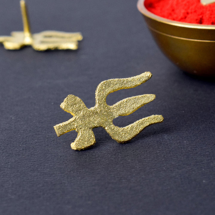 Brass Trishul with Damru Tilak Stamp Deity Ornament