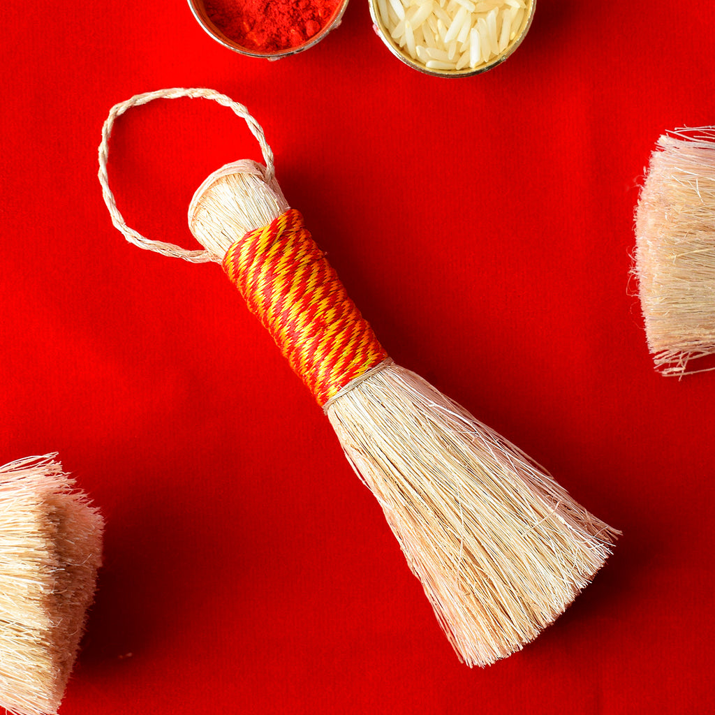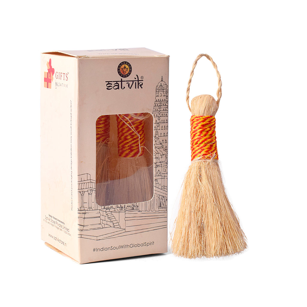 The Banana plant is a symbol of prosperity and holds a special place in ancient scriptures, associated with Lord Krishna and Goddess Lakshmi. Om Shanthi Puja Broom, crafted from pure Banana Stem Fiber, is designed for keeping your Puja space clean and dust-free. Its aesthetic design ensures thorough cleaning of every nook and corner, with an 12 centimeter height and a weight of approximately 25 grams. Keep your Puja space pure and invoke the blessings of Goddess Lakshmi with the Om Shanthi Puja Broom, a versatile tool for cleaning Puja rooms.