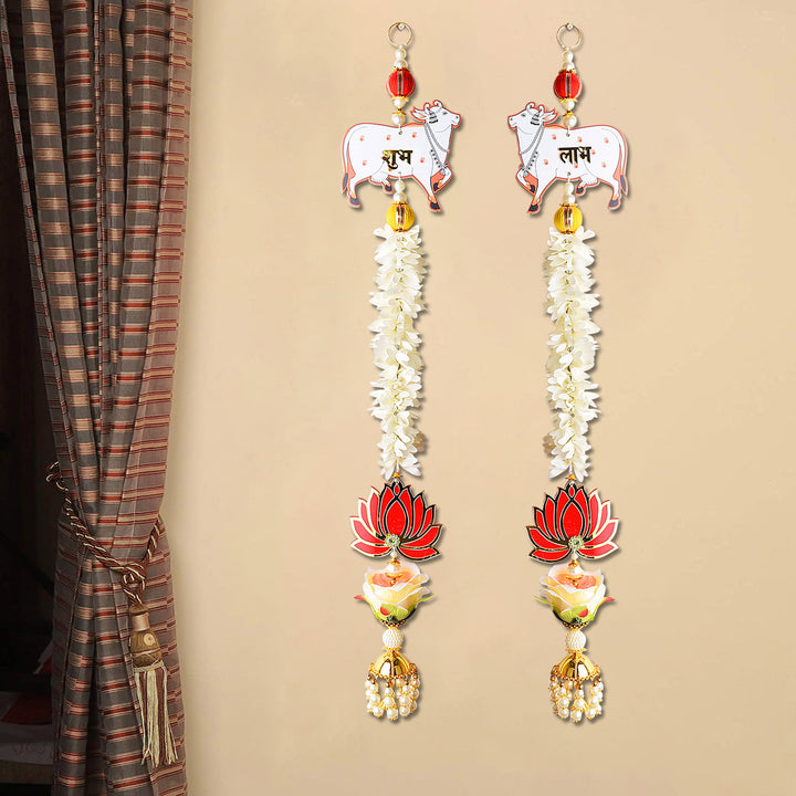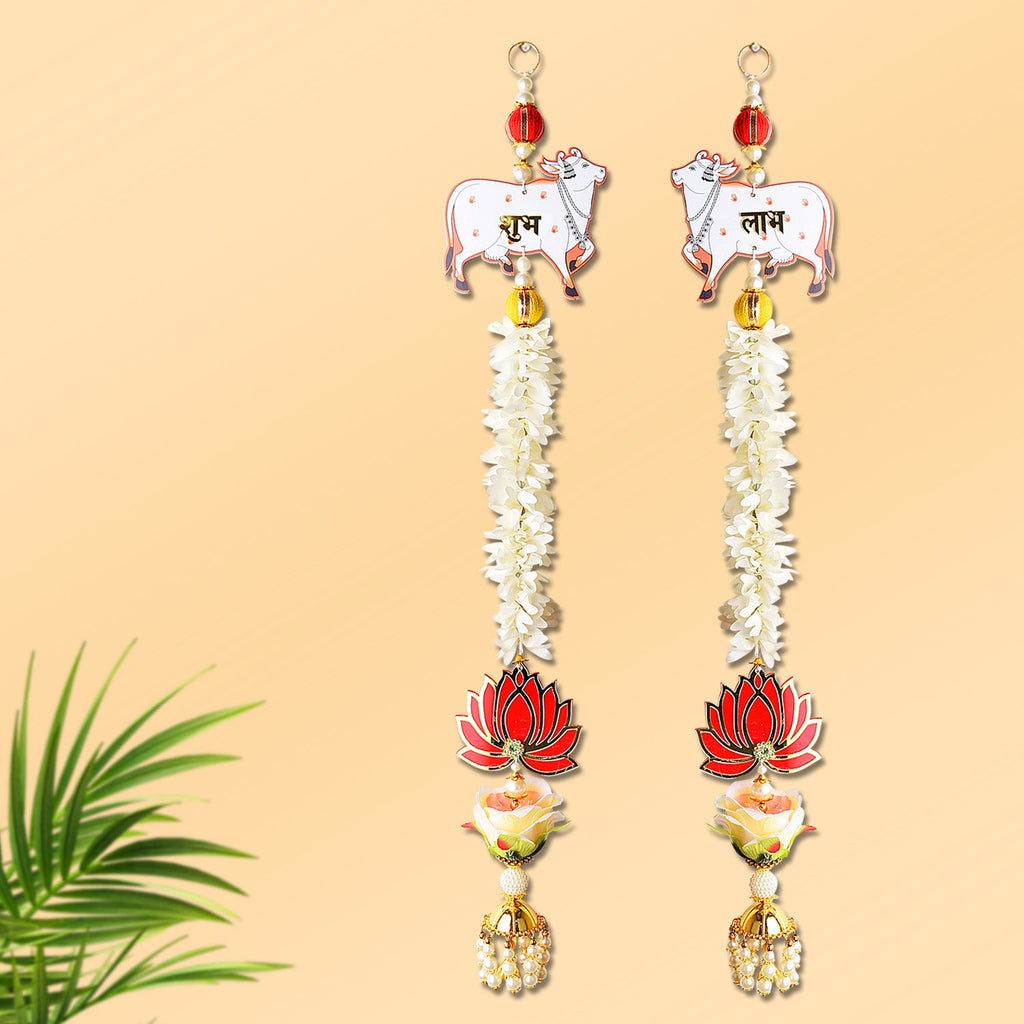Auspicious Cow Shubh Labh Side Wall Hangings (Color-Assorted)