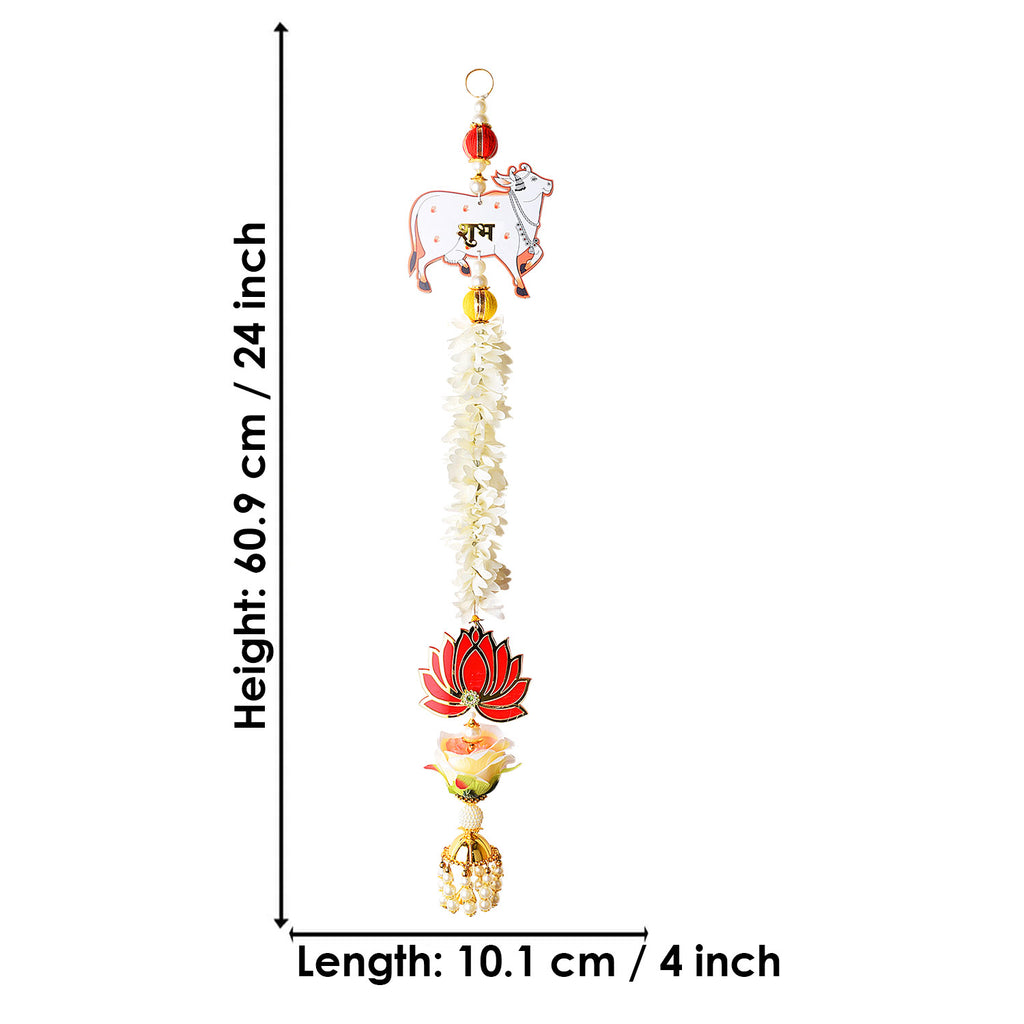 cow shubh labh hanging | auspicious side wall décor | acrylic cow wall hanging | pooja door décor | festive Indian wall art | navratri door decoration | gopashtami décor | traditional Indian toran | beads and mirror hanging | handmade shubh labh toran