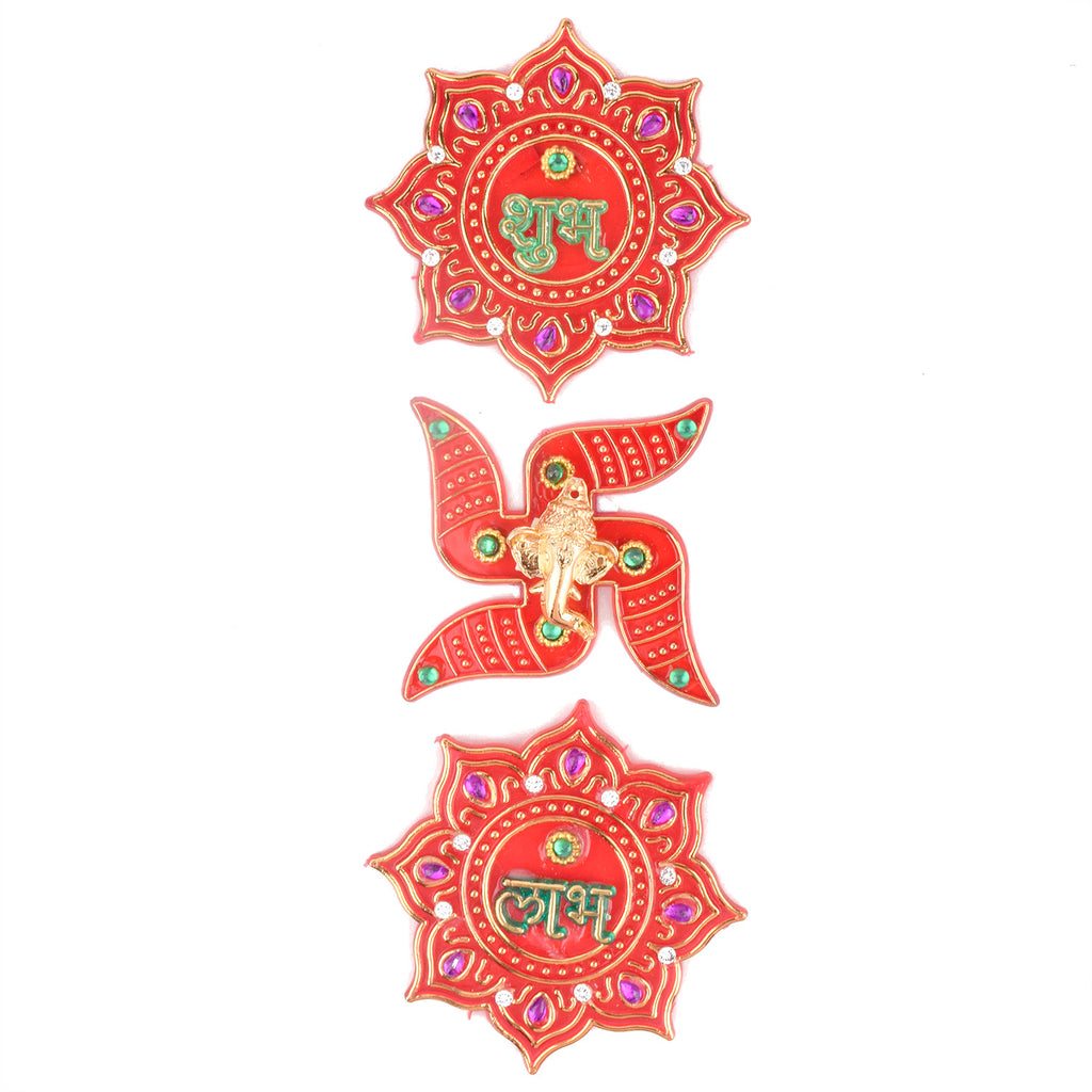 Item Name: Elegant Red Kalash Shubh Labh and Swastik Stickers s Set of 3