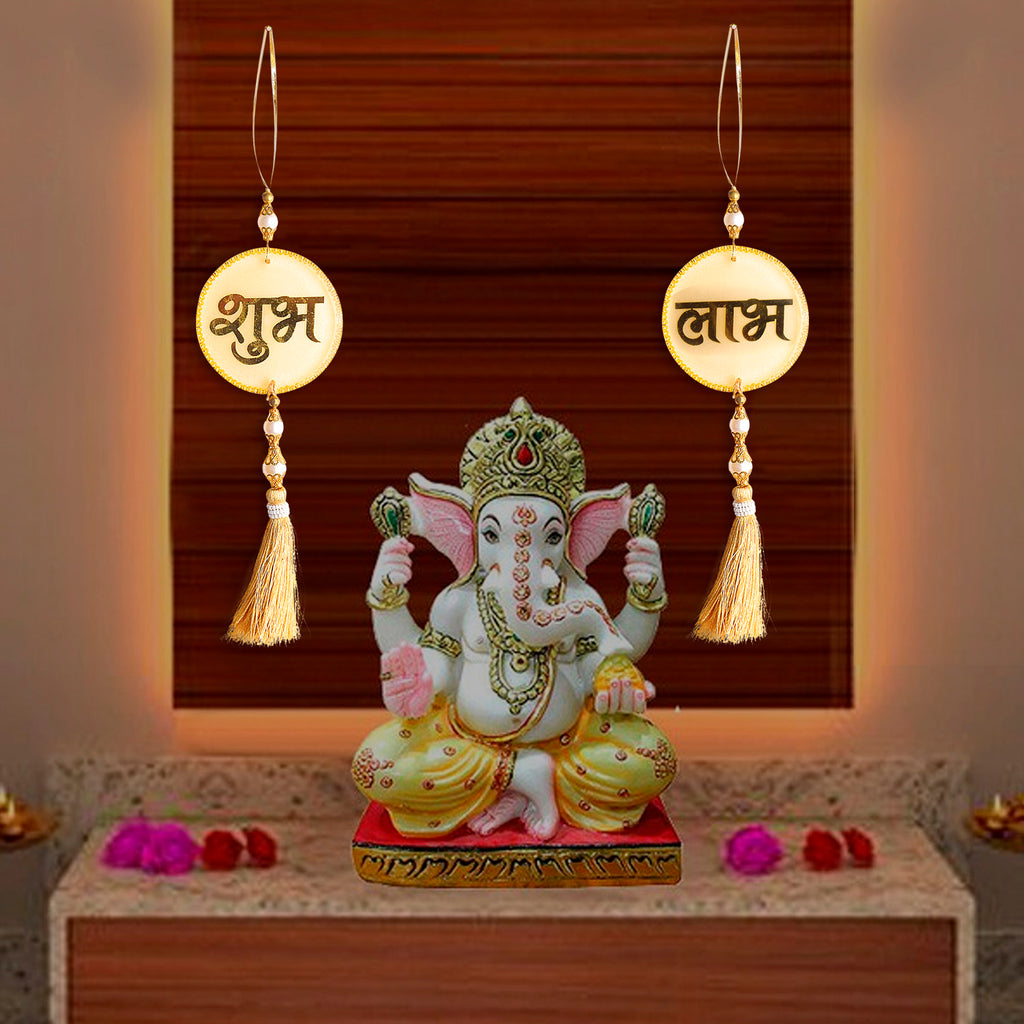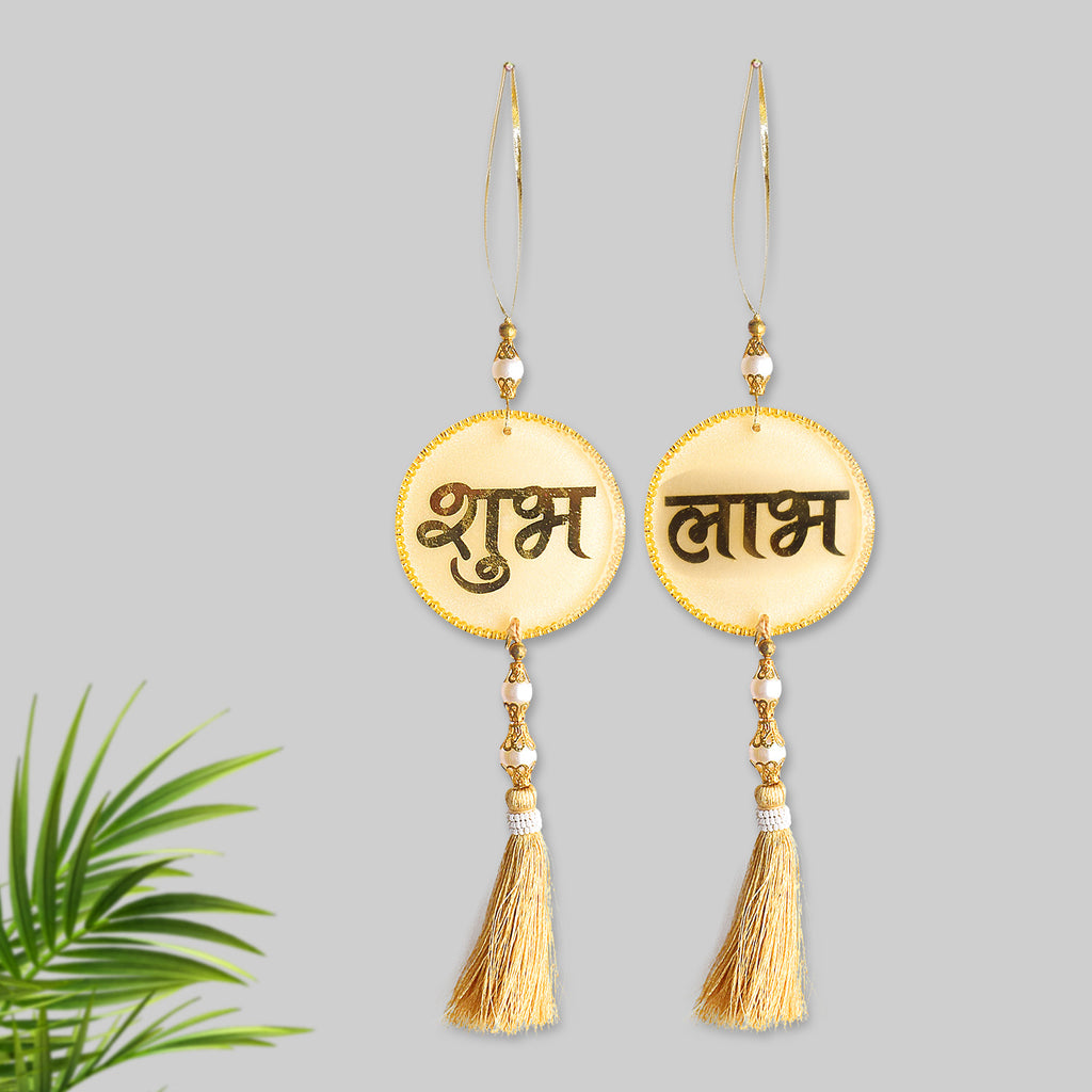 Buy Resin Shubh Labh With Tassels Latkans 1Pair For Wall Decoration – satvikstore.in