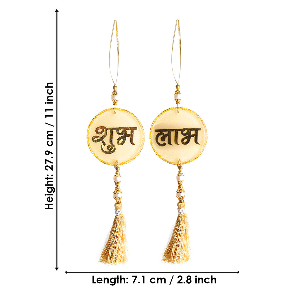 Item Name: Resin Shubh Labh With Tassels Latkans 1Pair For Wall Decoration
