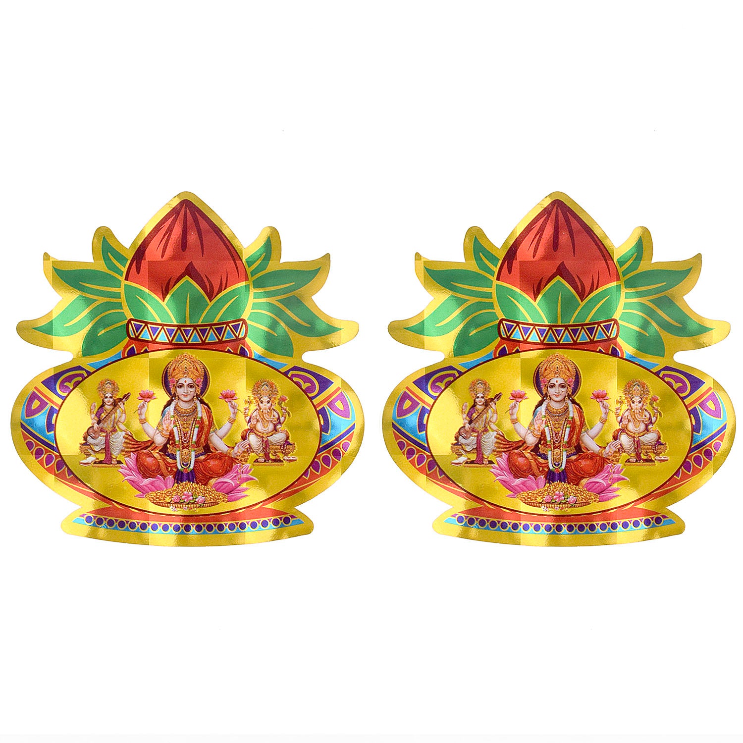 Laxmi ganesh saraswati with kalash sticker – satvikstore.in