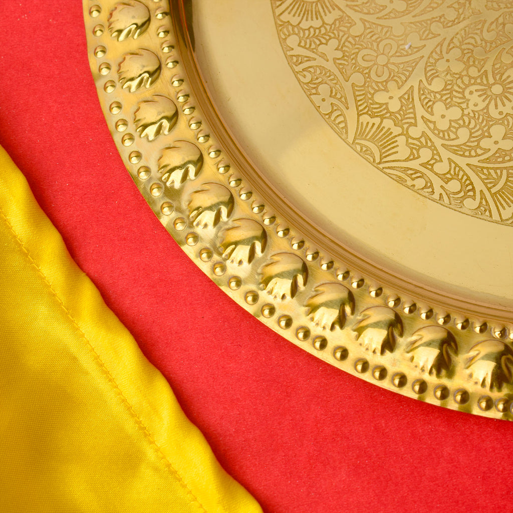 • Material: The Brass Puja Thali is made from High-Quality Brass Material