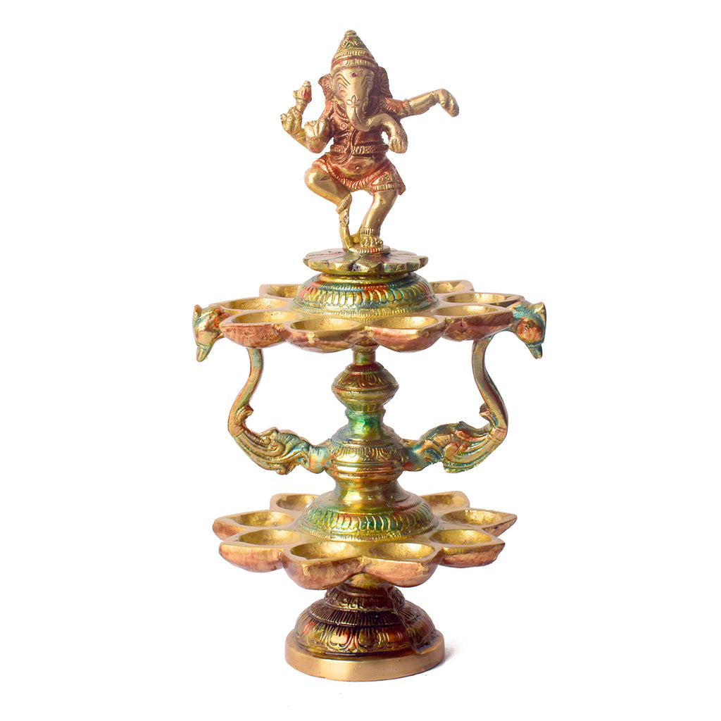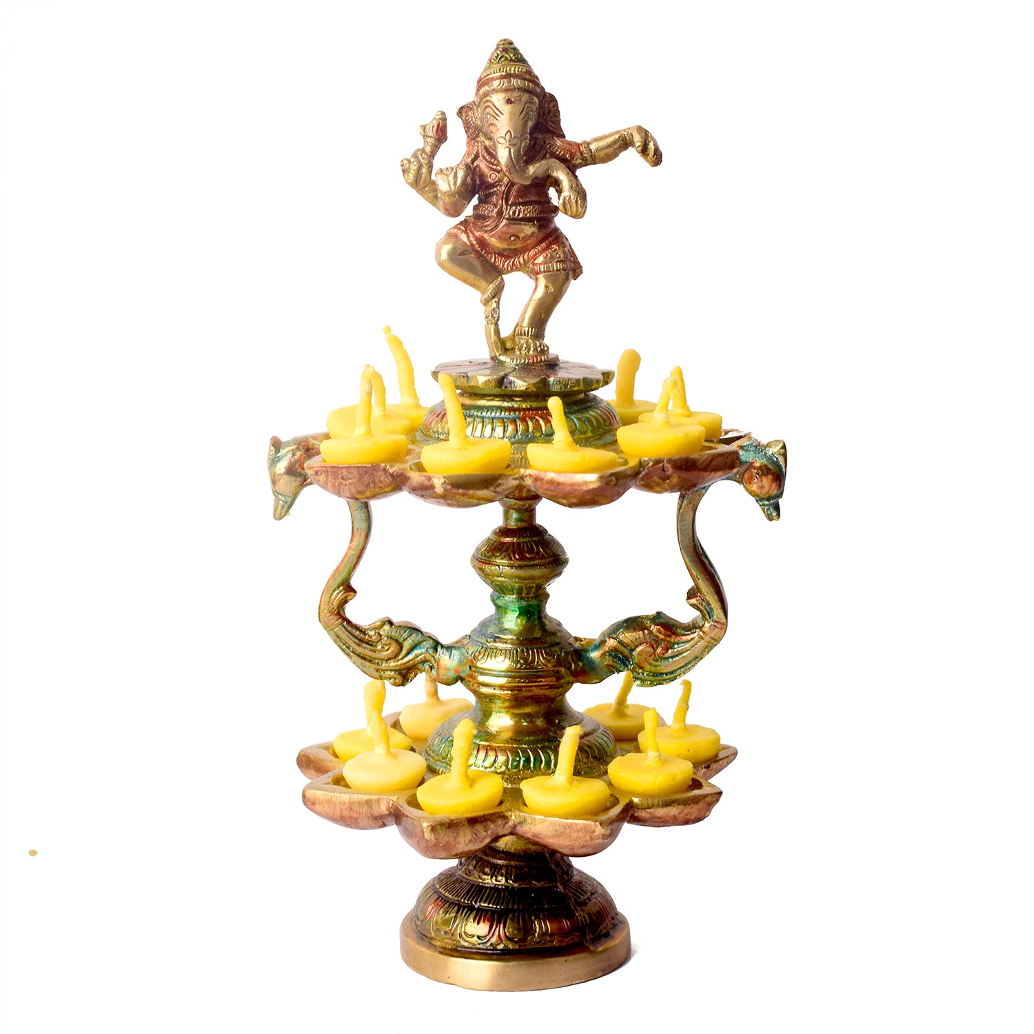 Buy Brass Handcrafted Brass 21 Wick Ganesha Diya 2 Step| Satvikstore.in – satvikstore.in