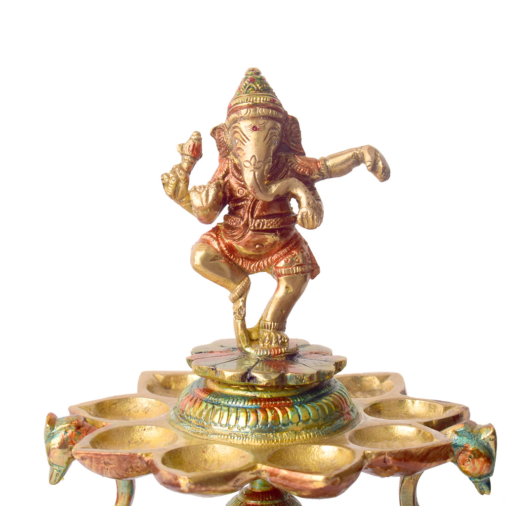 Handcrafted Brass 21 Wick Ganesha Diya – 2 Step Aarti Lamp
