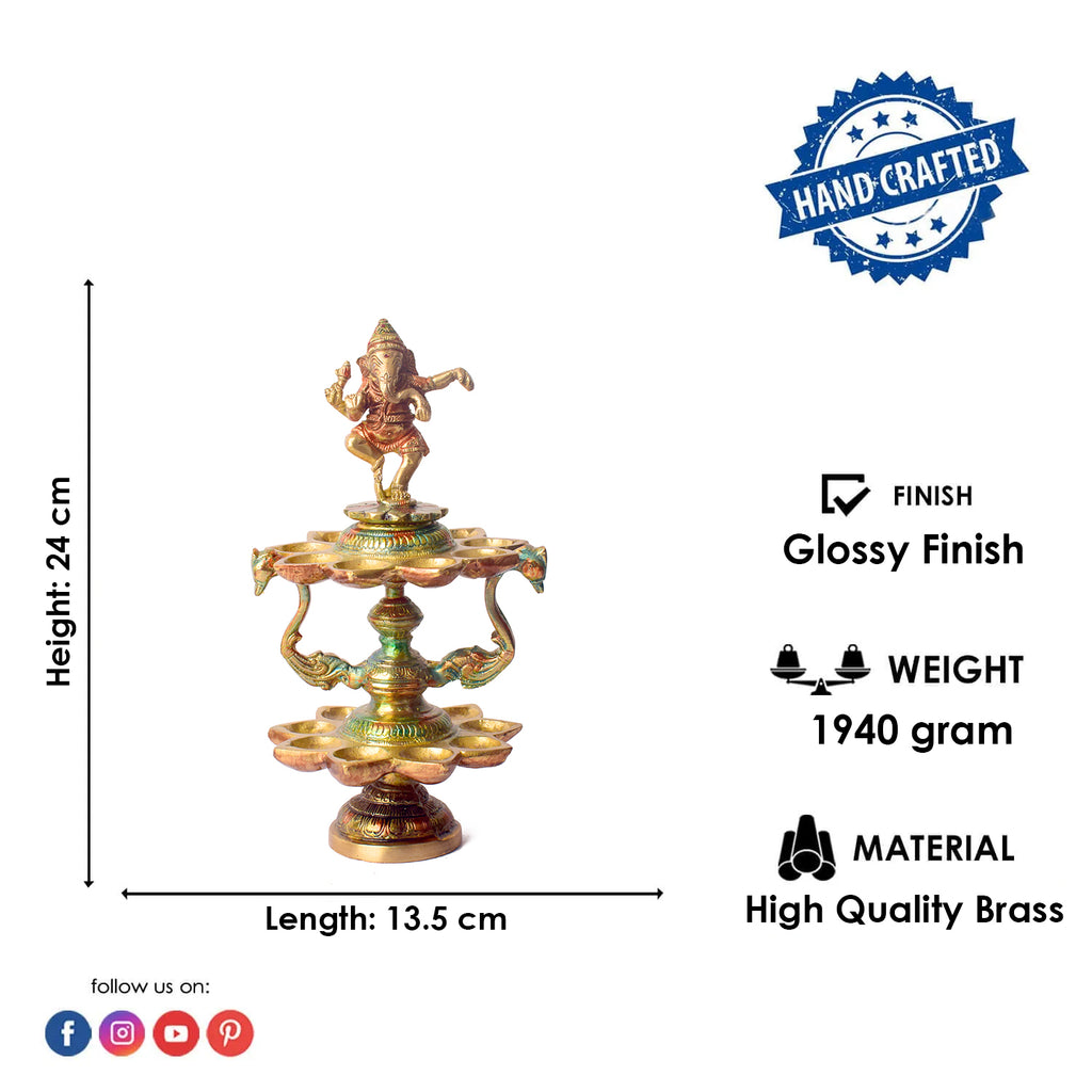 Item Name: Handcrafted Brass 21 Wick Ganesha Diya – 2 Step Aarti LampΒ