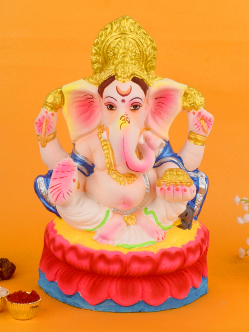 These True eco friendly Ganpati idols are also available in multi-colour options in red, white, yellow, green, white, pink, purple, blue, orange, gold, and other vibrant colours at the best price compared to the market online and come in beautiful packaging to gift to your relatives and friends. Eco Friendly Ganesha Idols are available in the Latest and Designer Collection of 2023 with Pagdi Ganesha, Mukut Ganpati, Ganeha Sitting in Chair Singashan, Bal Ganesha, Standing Ganesha, Lal Bagh ka Raja Ganpati Murti, Lalbaugcha Raja Ganesha Idol, and Many More.