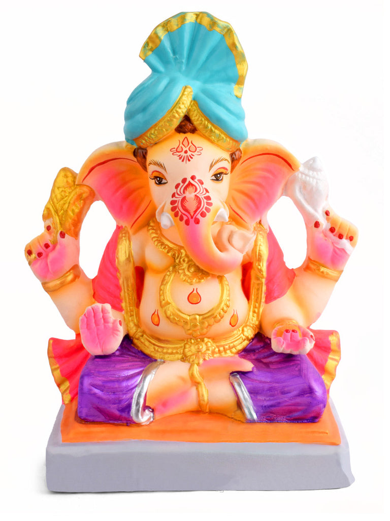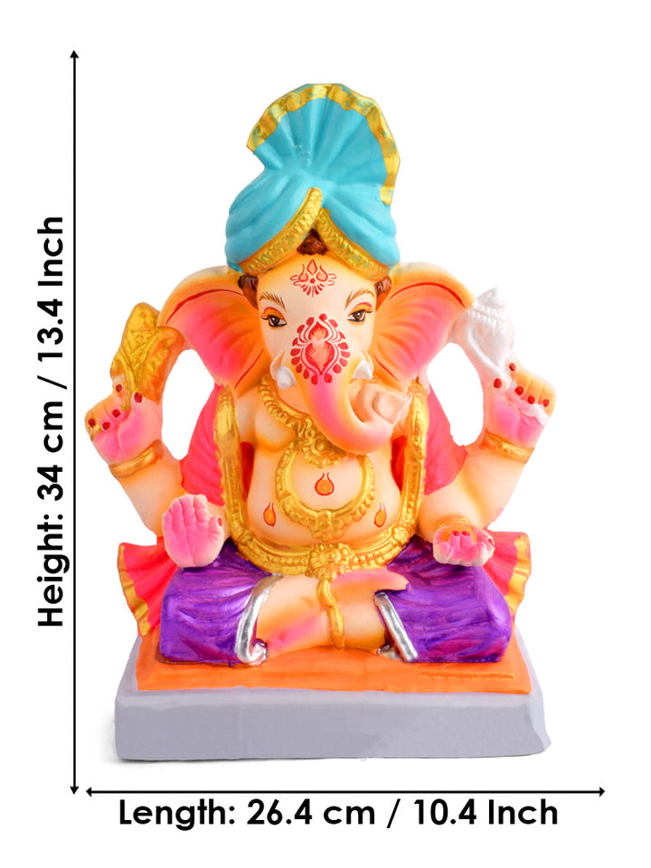 Item Name: Gajrup Eco Friendly Ganesha With Pagdi 13.5 Inches Idol/Ganpati Murti