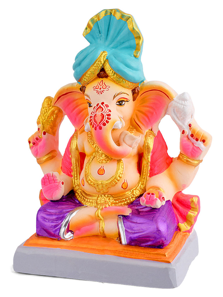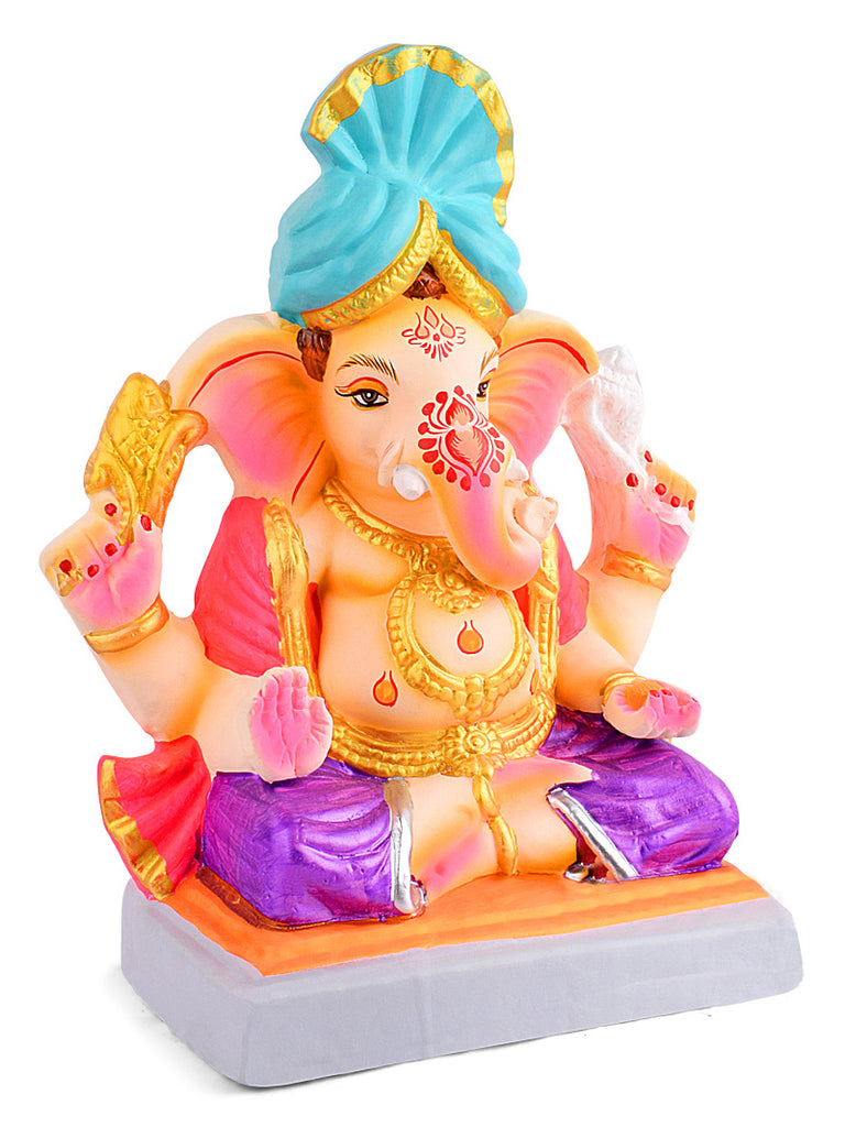 Eco Friendly Ganesha statues are made of 100% biodegradable and eco-friendly material by using Shadu Mati Clay Mitti, which dissolves easily in water. The colours used are also natural, and they decompose and dissolve in water easily. Although they have been made all across India, West Bengal and Maharashtra often employ skilled artisans to make them.