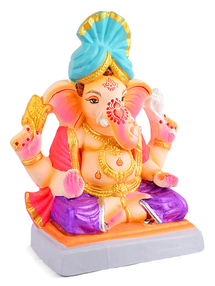 Material: Our Sarvatman Eco Friendly Ganesha With Pagdi 13 Inches Idol are Made of 100% Bio-degradable Eco Friendly Mud/Mitti. Sadhu Matti Clay.