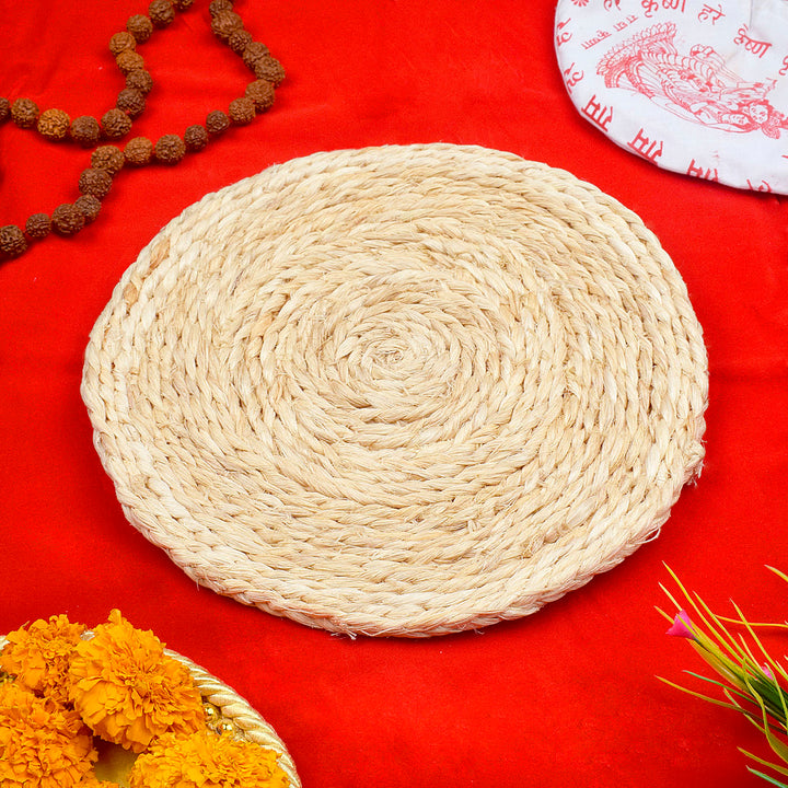 Auspicious Banana Stem Fiber Asan for Sacred Statues in the Mandir (10 Inch)