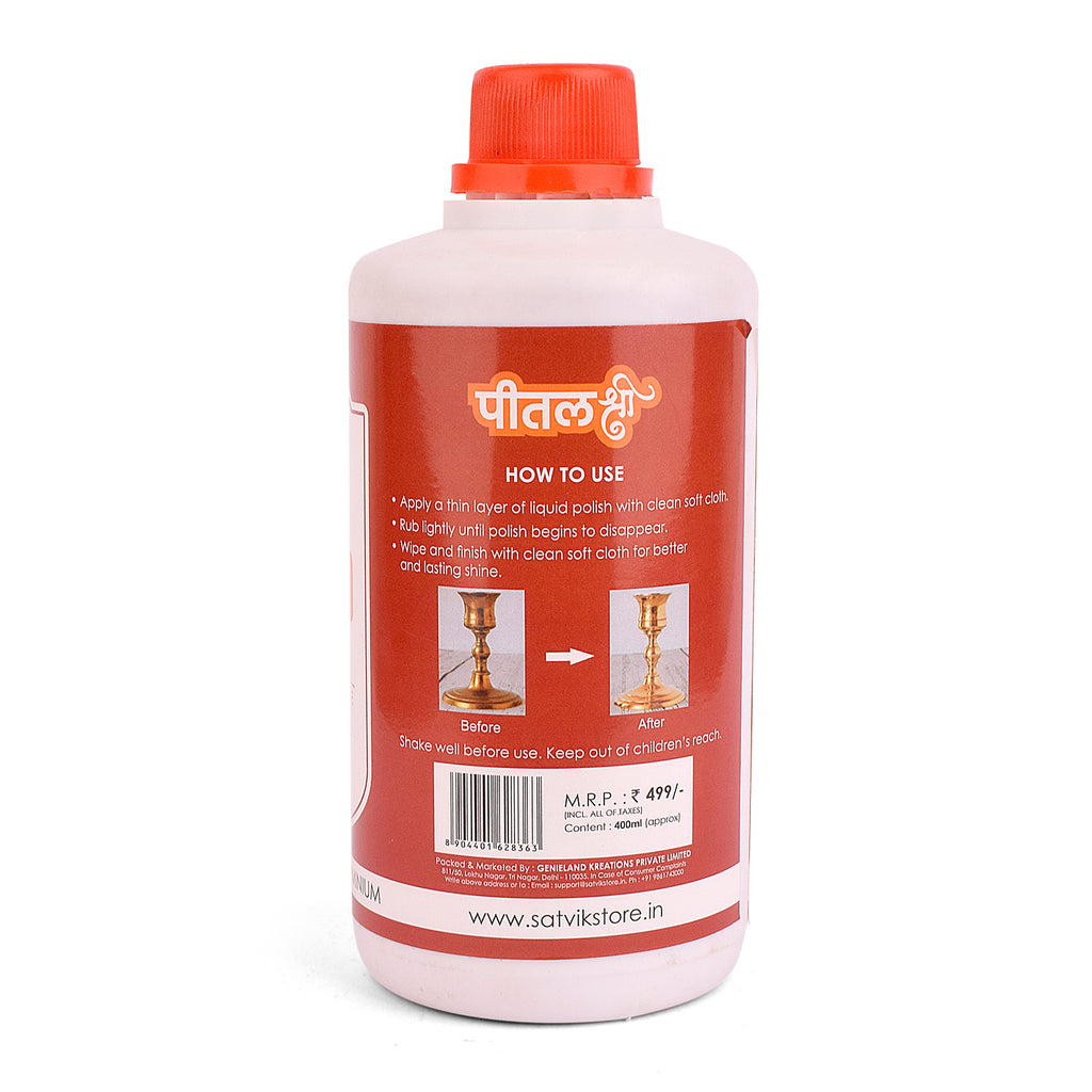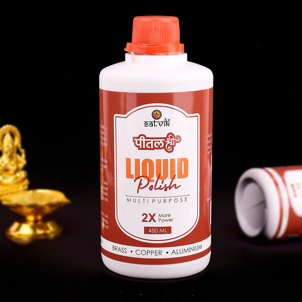 Satvik Liquid Metal Polish is Multipurpose Polish which Comes in Liquid Form. This is helpful in cleaning of Brass ,Copper, Alluminium, Stainless Steel Utensils, Ornaments, Dinnerware, Cups Mugs, Oil Lamps. Its also helpful to Clean Diwali Diya made of brass and copper. Moscow Mule, Copper & Brass Thali Set Etc. Pitam Cleaner Bari Brass Cleaner.
