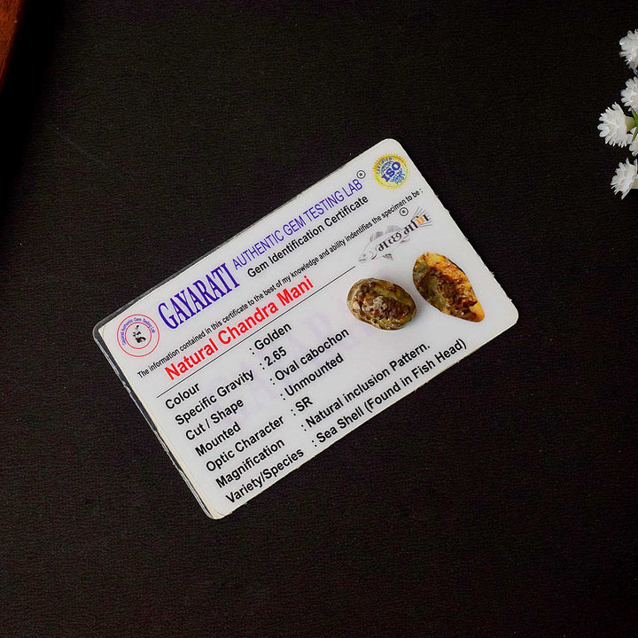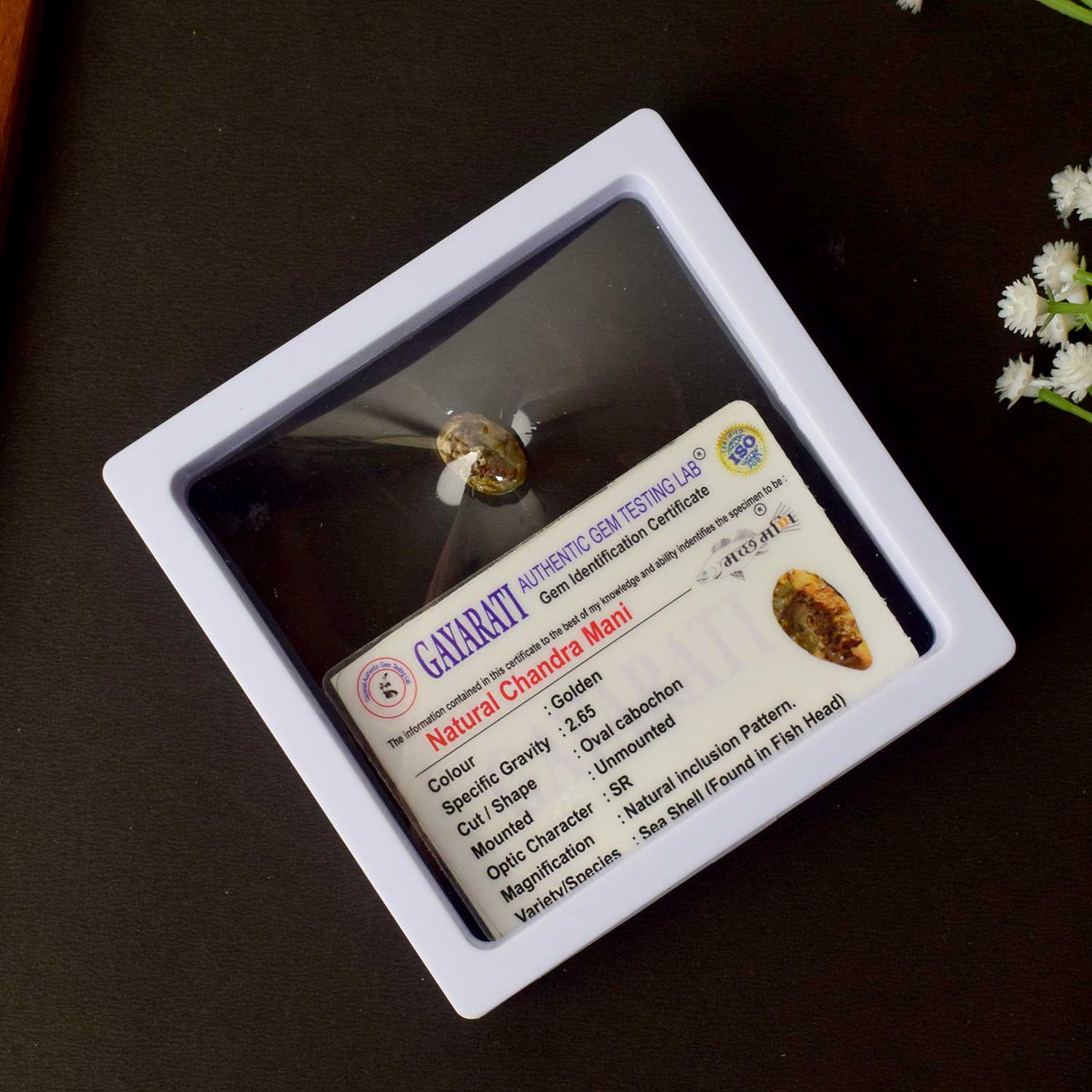 • Item Name: Certified Chander Mani Machmani / Machh Mani in Golden Finish