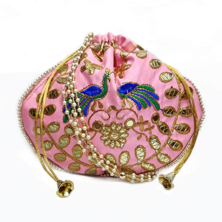Ethnic Peacock Design Zari Work Women's Potli – satvikstore.in