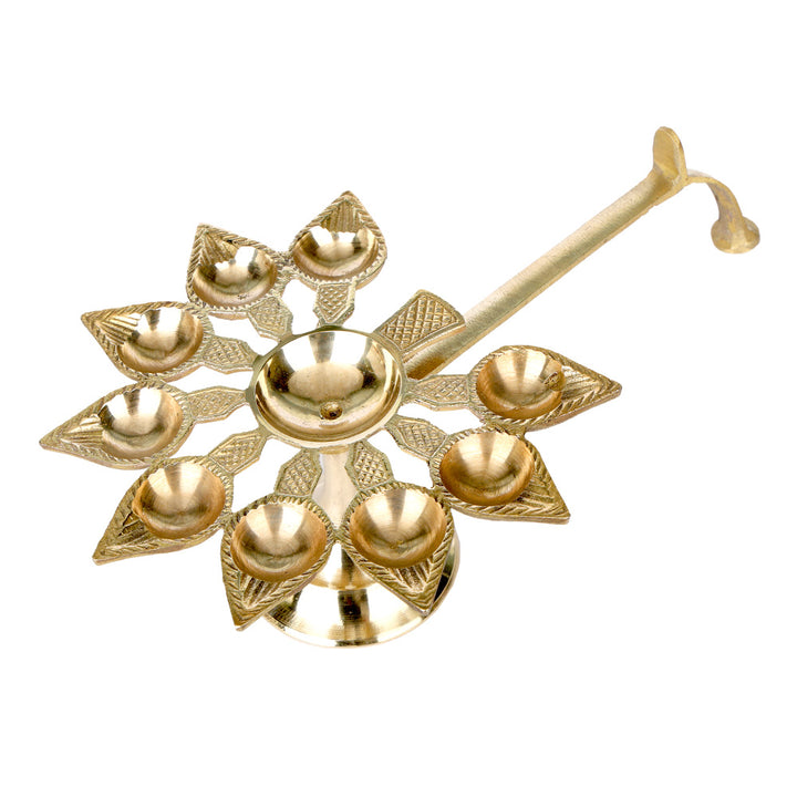 Brass 9 Mukhi Aarti Diya with Handle