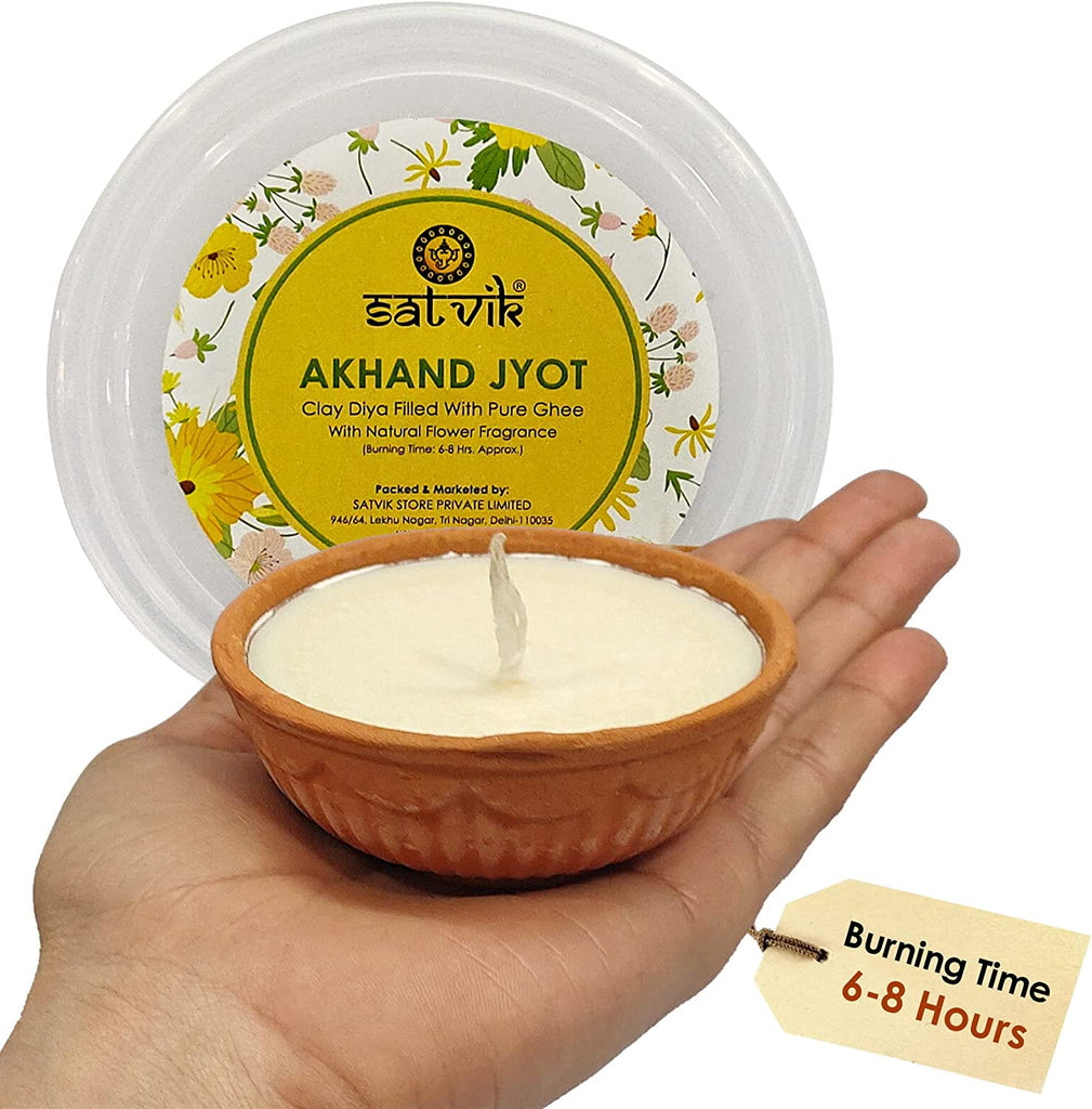 Buy: Satvik Pure Desi Ghee Akhand Jyot 6 to 8 Hours Burning Time – satvikstore.in