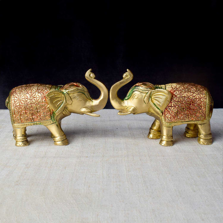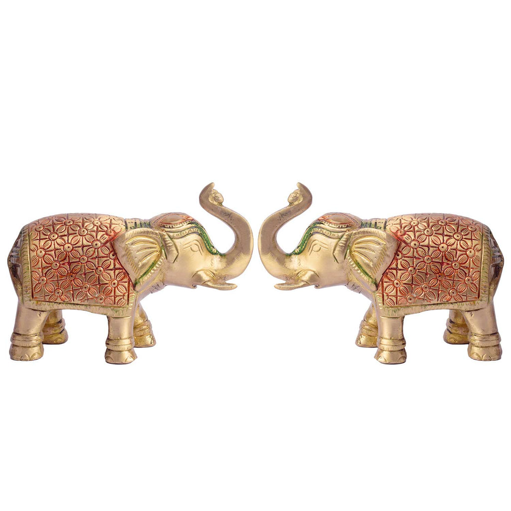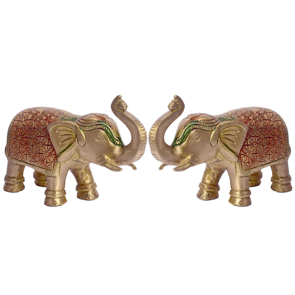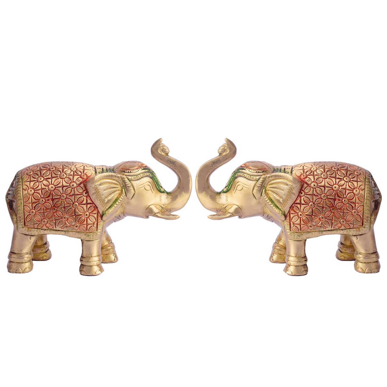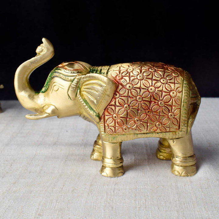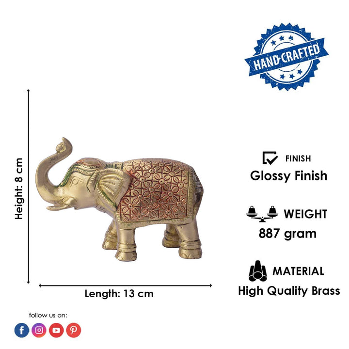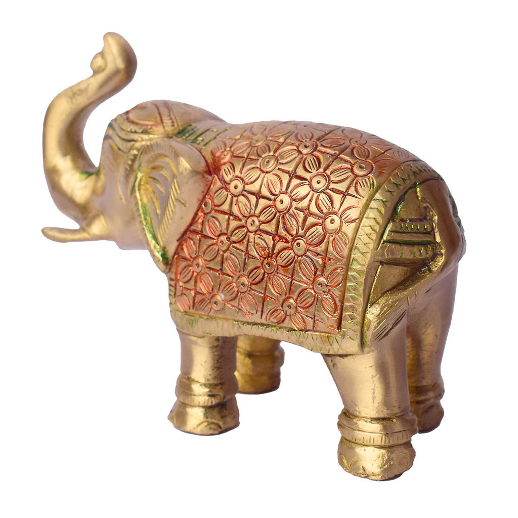 About the Product: Add a touch of grace and good fortune to your space with this 3.1 Inch Handcrafted Brass Elephant Statue. Beautifully detailed with traditional floral carvings and accented with hints of green and red, this elephant features an uplifted trunk—a symbol of prosperity, wisdom, and positive energy. In Vastu and Feng Shui, placing an elephant with its trunk raised is believed to attract wealth, luck, and protection.
