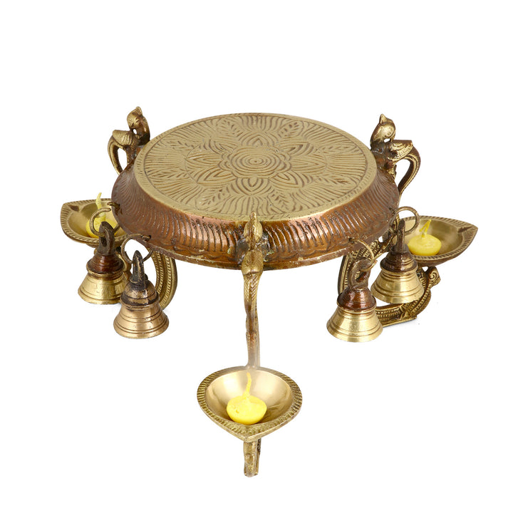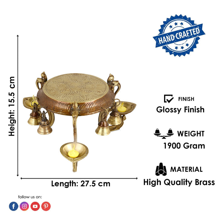 • Material: This Handcrafted Chowki with Diya and Bell from high-quality Brass Material