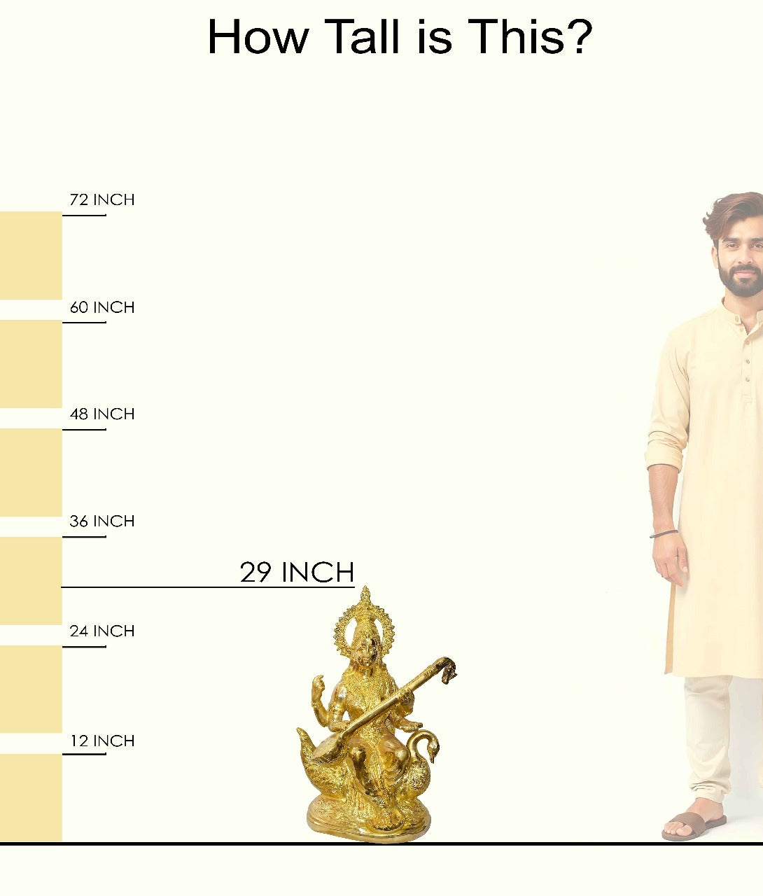• About the Product: 29 Inch Goddess Saraswati Brass Murti – Divine Goddess of Wisdom & Arts