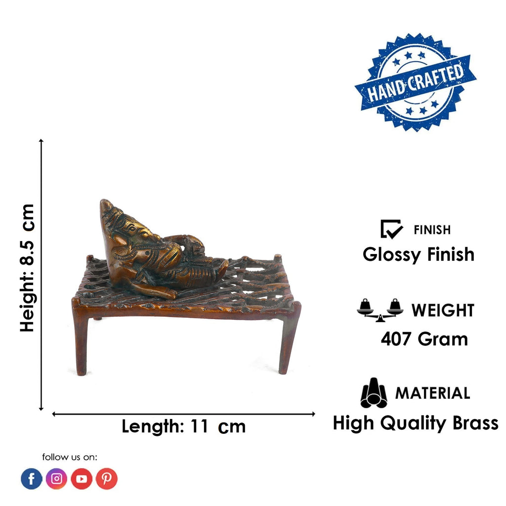 Buy Online | Antique Brass Ganesha Relaxing On Charpoy |Satvikstore.in – satvikstore.in
